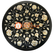 18" Black Marble Coffee Center Table Top Mother of Pearl Inlay Floral Art Deco
