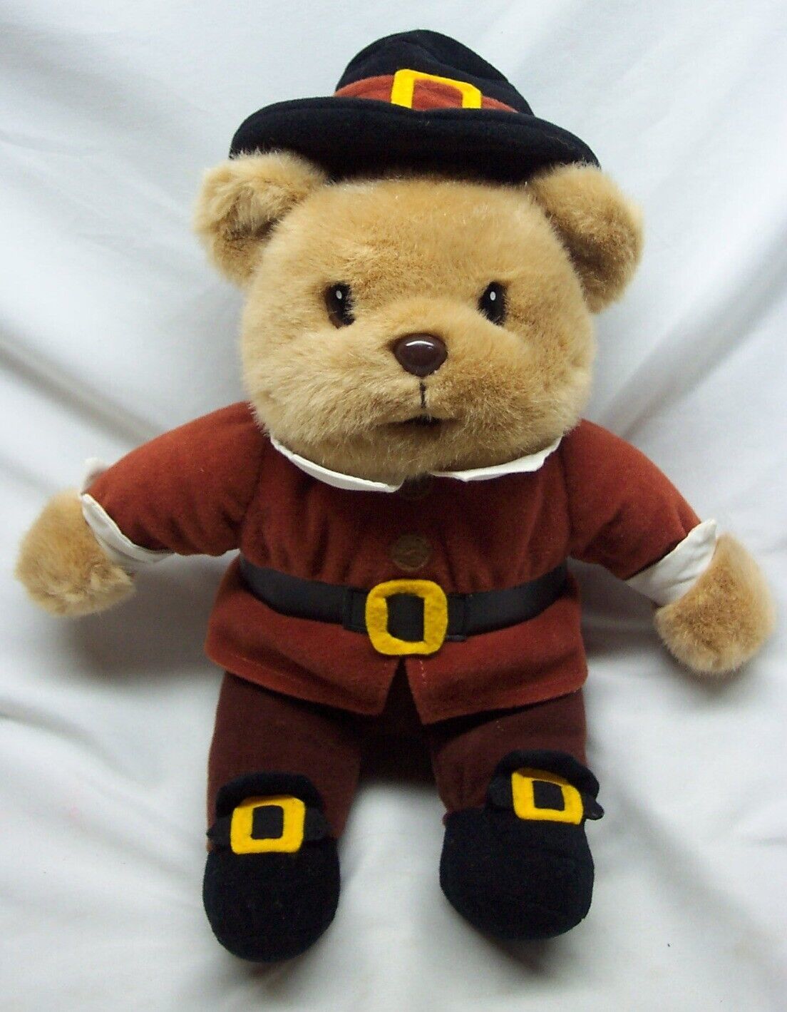 VINTAGE 1997 Gibson TEDDY BEAR PILGRIM 13" Plush STUFFED ANIMAL Toy Thanksgiving