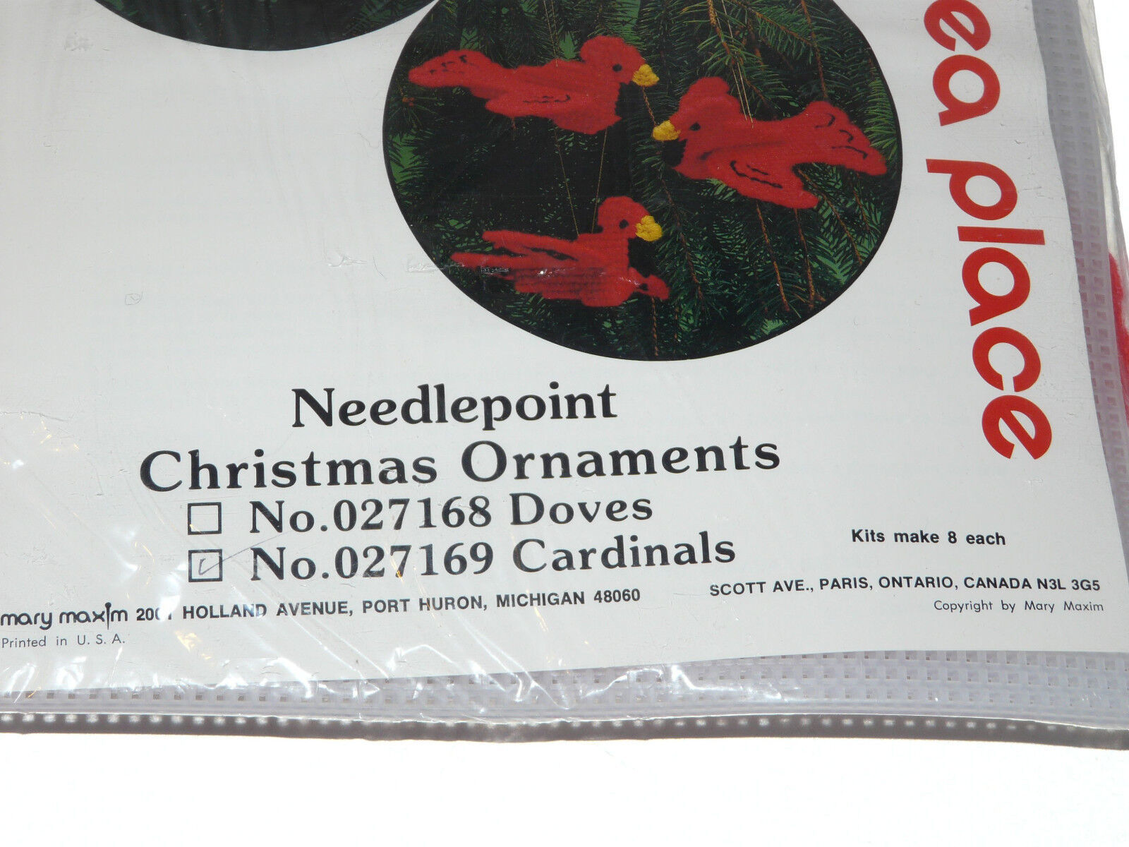 Mary Maxim Christmas Cardinals Needlepoint Ornament Kit 027169 Makes 6 NEW