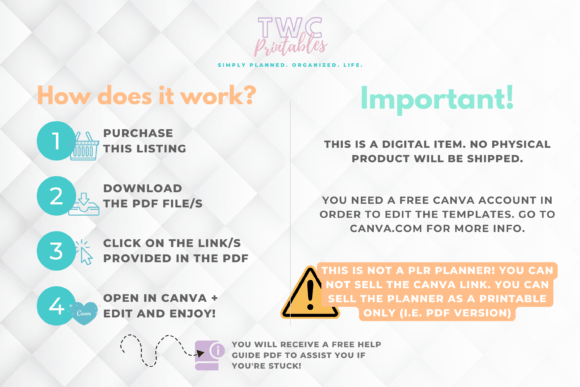 • Canva links can NOT be resold, which means that you will need to change them up and download them as a final PDF, PNG, or JPEG.