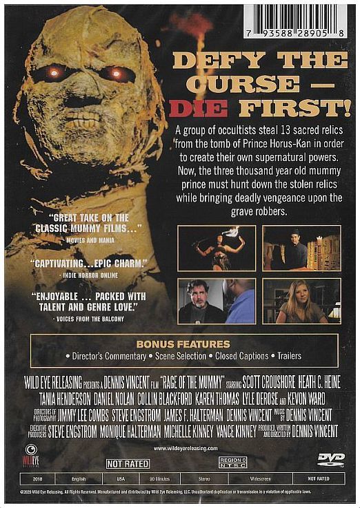 Plot: Defying an ancient curse, a group of occultists steal 13 sacred relics from a tomb to feed their supernatural powers. Now, the three-thousand-year-old mummy, Prince Horus-Kan, must hunt down the stolen relics and bring deadly vengeance upon the perpetrators. 110824-110824T-DVD12