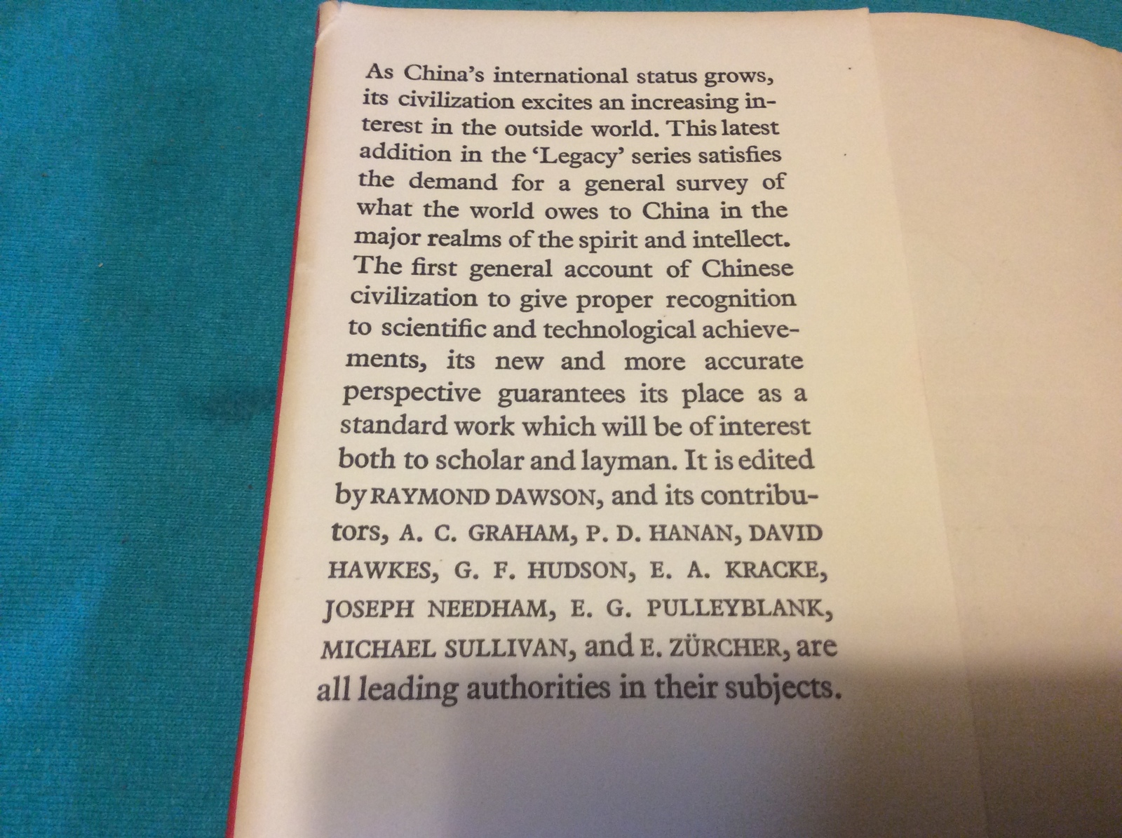 THE LEGACY OF CHINA by RICHARD DAWSON - Hardcover 1964 FIRST EDITION - Free Ship