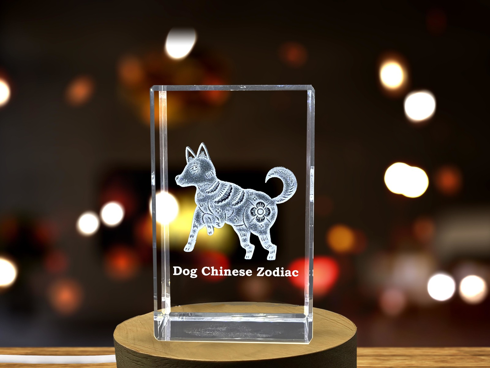 LED Base included | Dog Zodiac Crystal with Beautifully Carved 3D Chinese