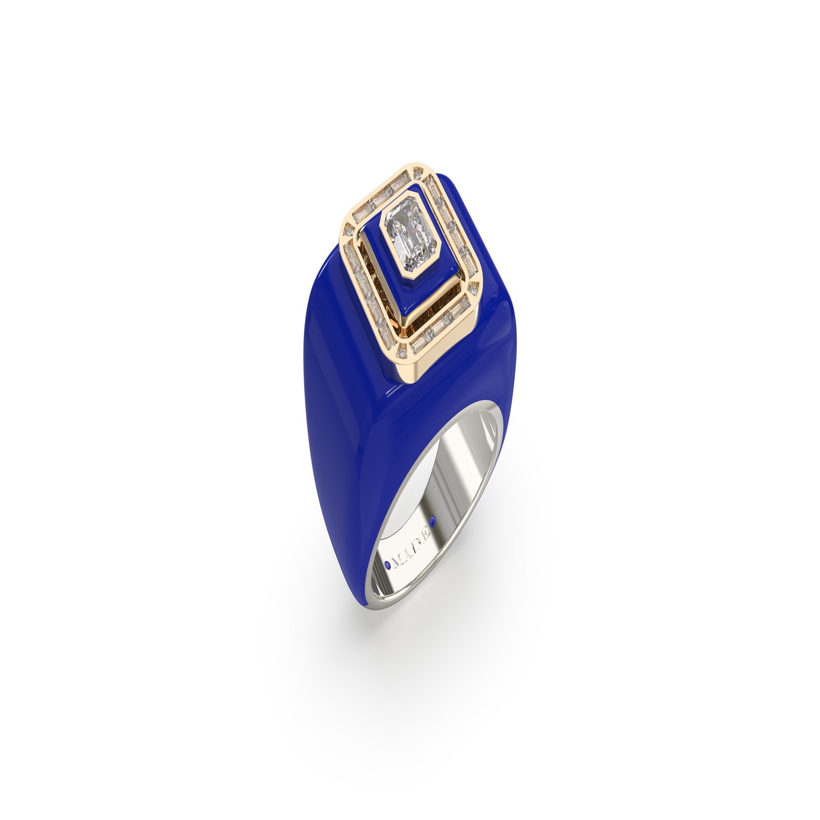 Blue Ceramic LabGrown Diamond Signet Ring in and similar items