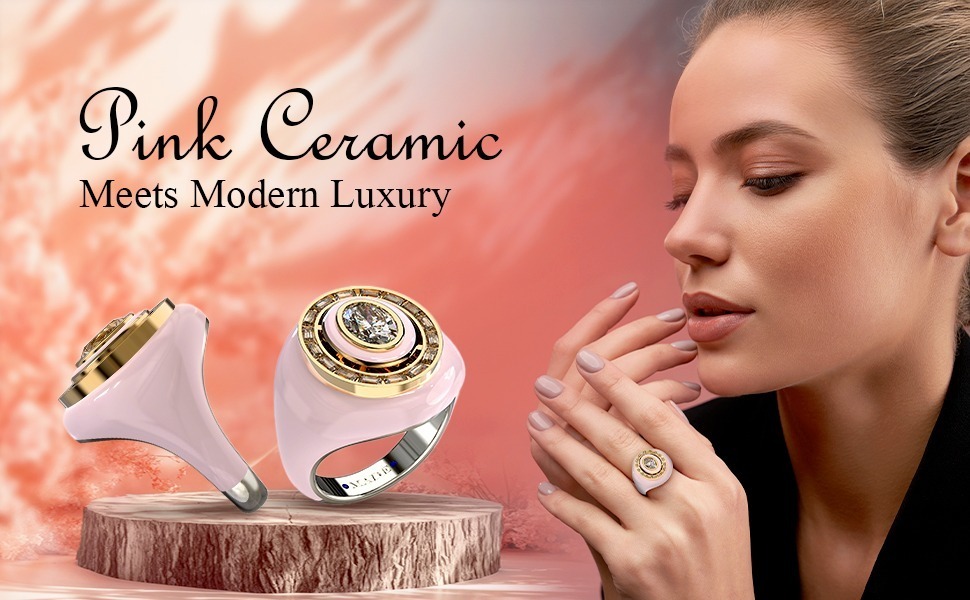 Pink Ceramic LabGrown Diamond Signet Ring in and 43 similar items