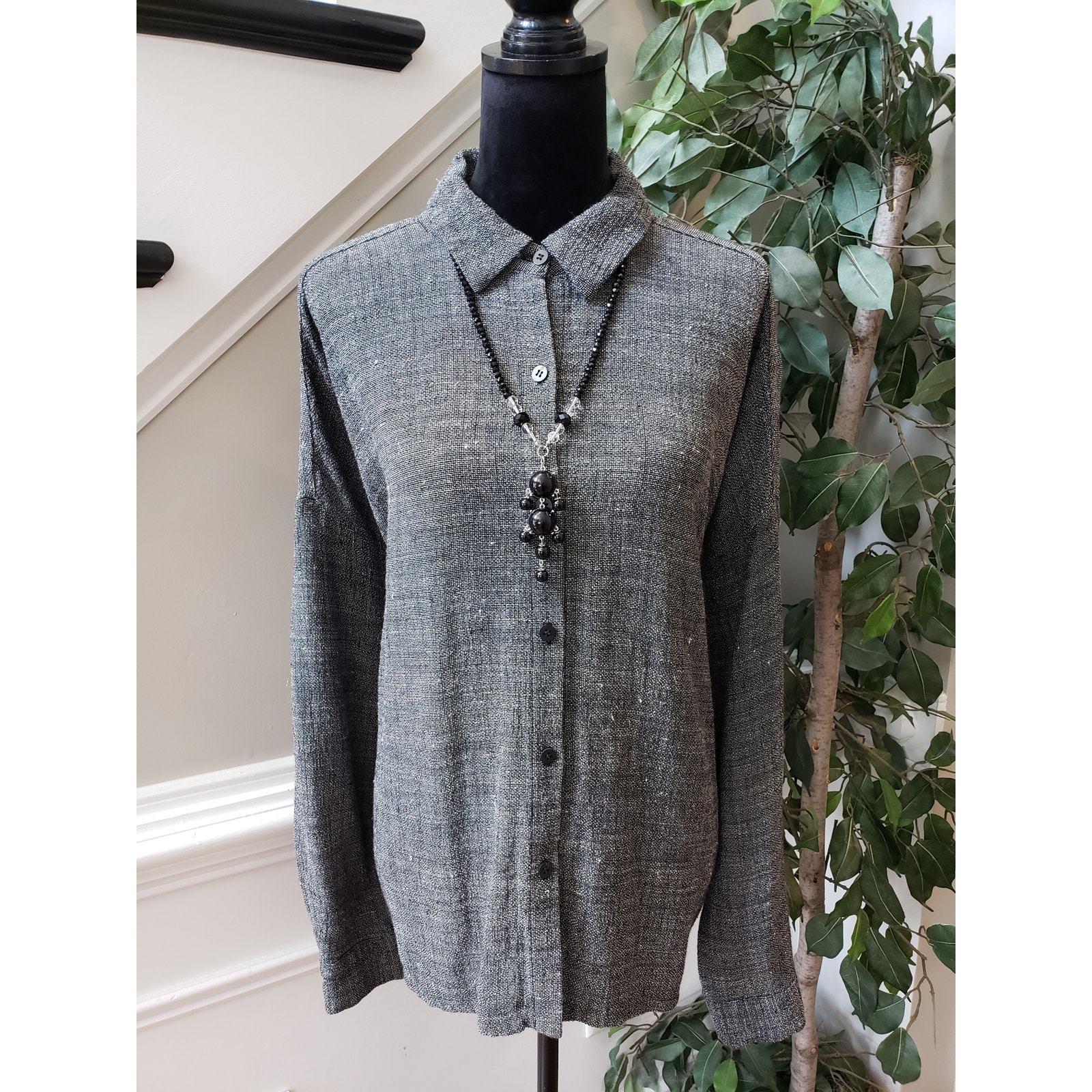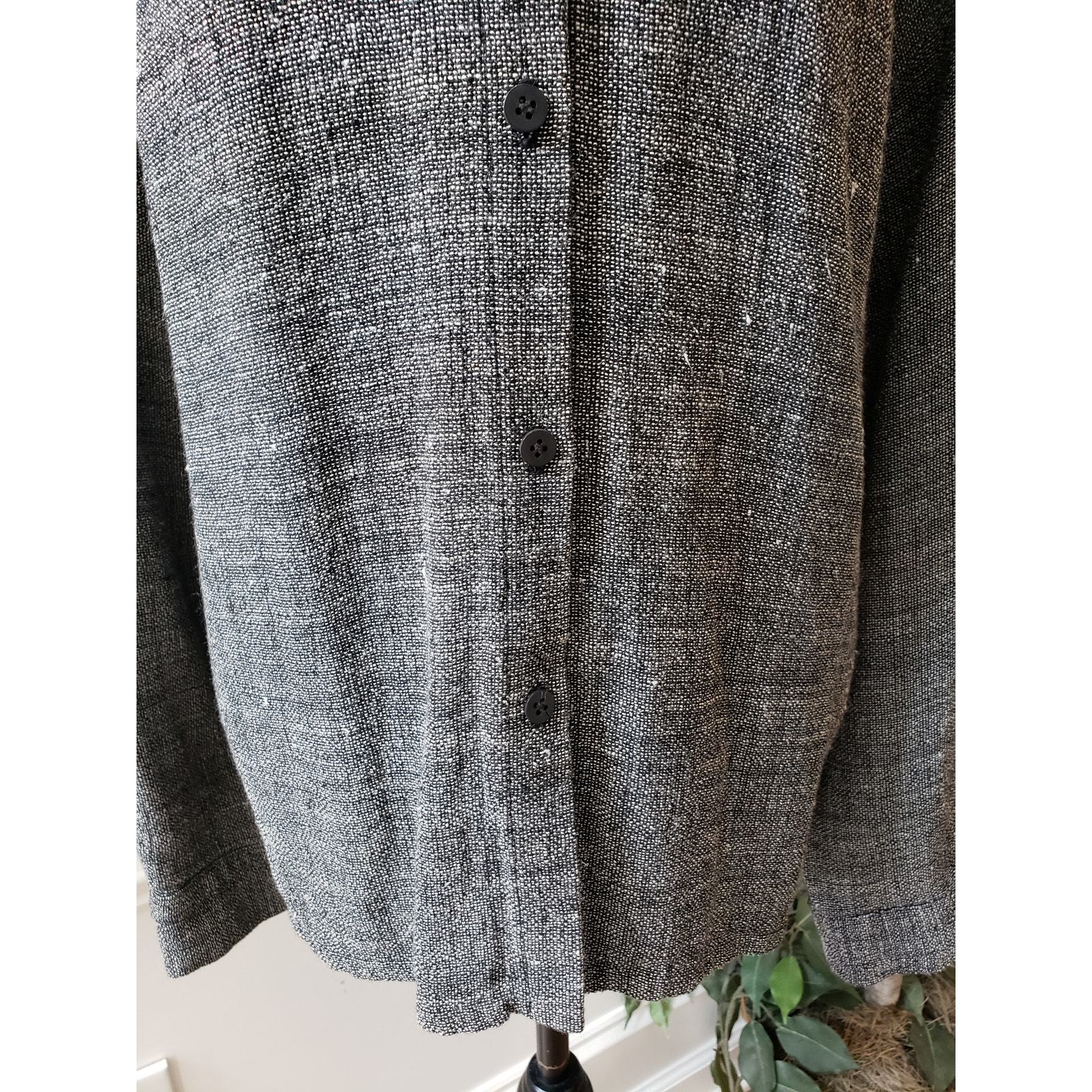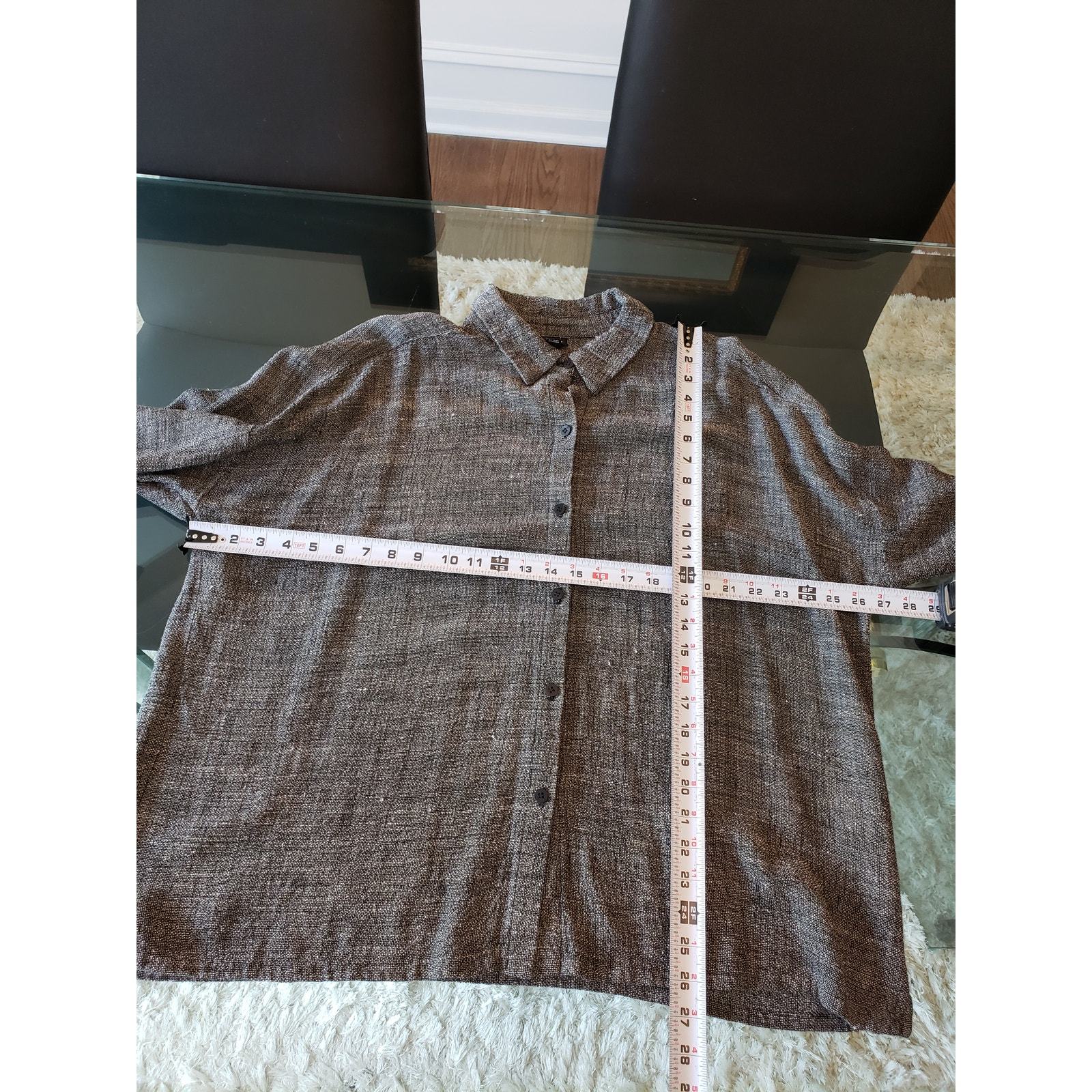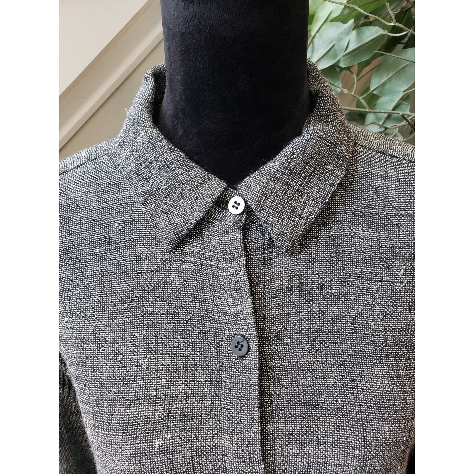 Eileen Fisher Button Down Shirt Women's Large Gray Solid Long Sleeve Collared