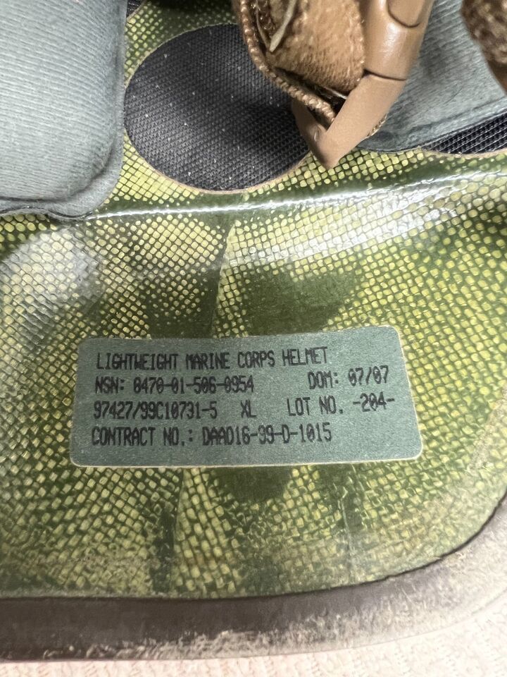 GENUINE USMC GENTEX LEVEL IIIA LIGHTWEIGHT MARINE CORPS COMBAT HELMET - X-LARGE.