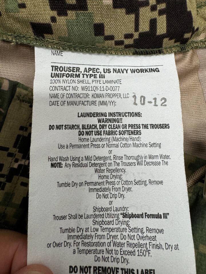Genuine Us Navy Nwu Apec Aor2 Type III Cold Weather Gore Tex Pants.