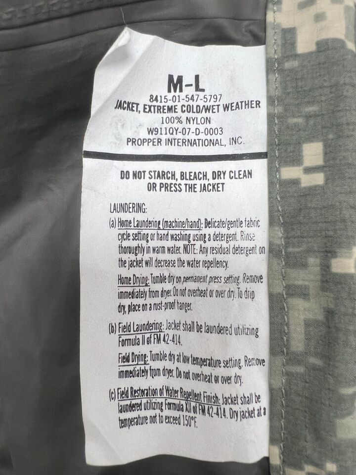 USGI ECWCS ACU GEN III LEVEL 6 EXTREME COLD/WET WEATHER JACKET - MEDIUM LONG.