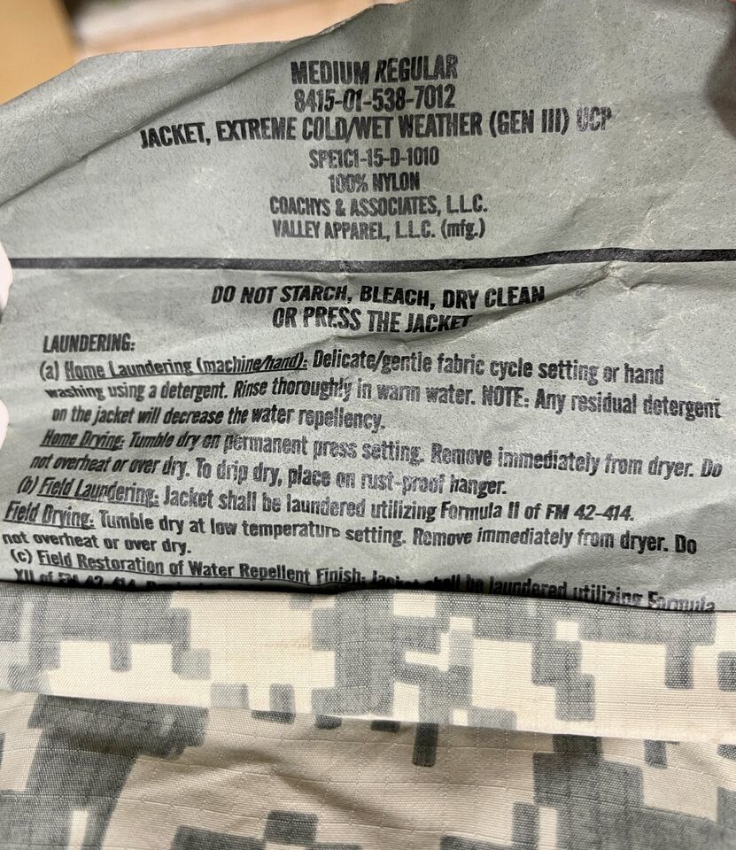 ORIGINAL US MILITARY ISSUE - ECWCS ACU DIGITAL GEN III LEVEL 6 EXTREME COLD/WET WEATHER SET (JACKET AND PANTS).