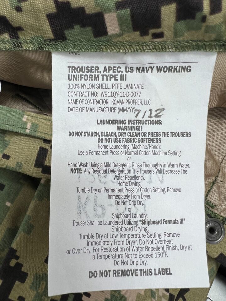 Genuine Us Navy Nwu Apec Aor2 Type III Cold Weather Gore Tex Pants.