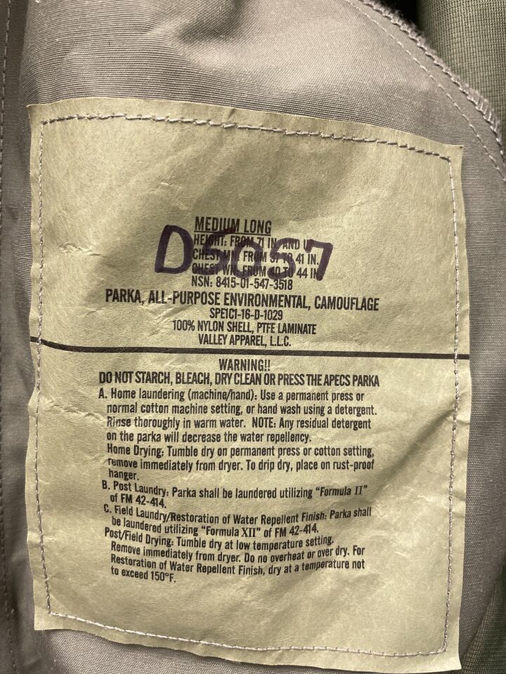 GENUINE USAF APECS ABU GORE TEX TIGER STRIPE ALL PURPOSE PARKA - MEDIUM LONG.