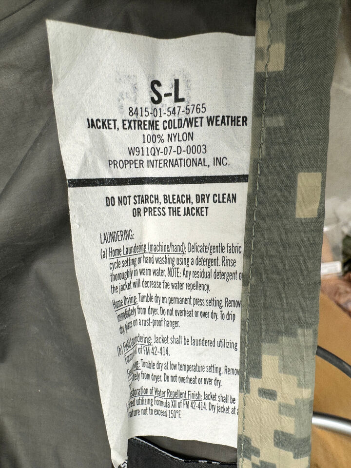 NEW USGI ECWCS ACU GEN III LEVEL 6 EXTREME COLD/WET WEATHER JACKET - SMALL LONG