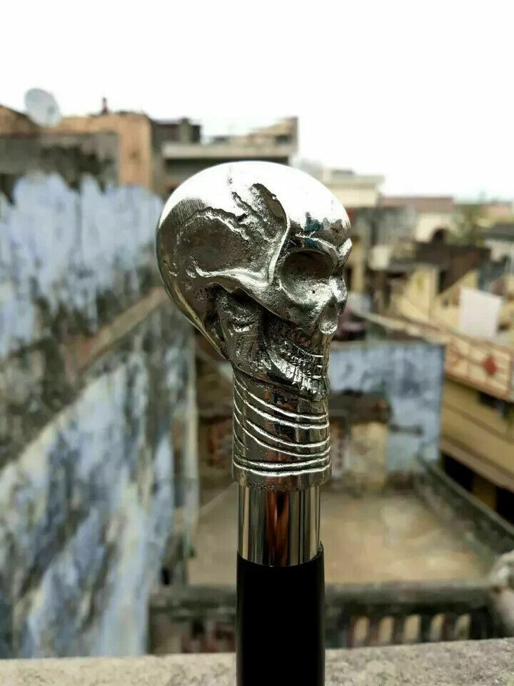 Designer Brass Skull Head Handle Walking Cane Wooden Walking Stick Style alumnmi