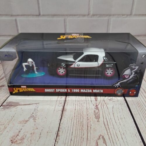 Spiderman Ghost Spider Figure 1990 Mazda Miata 1:32 Scale Jada 33662