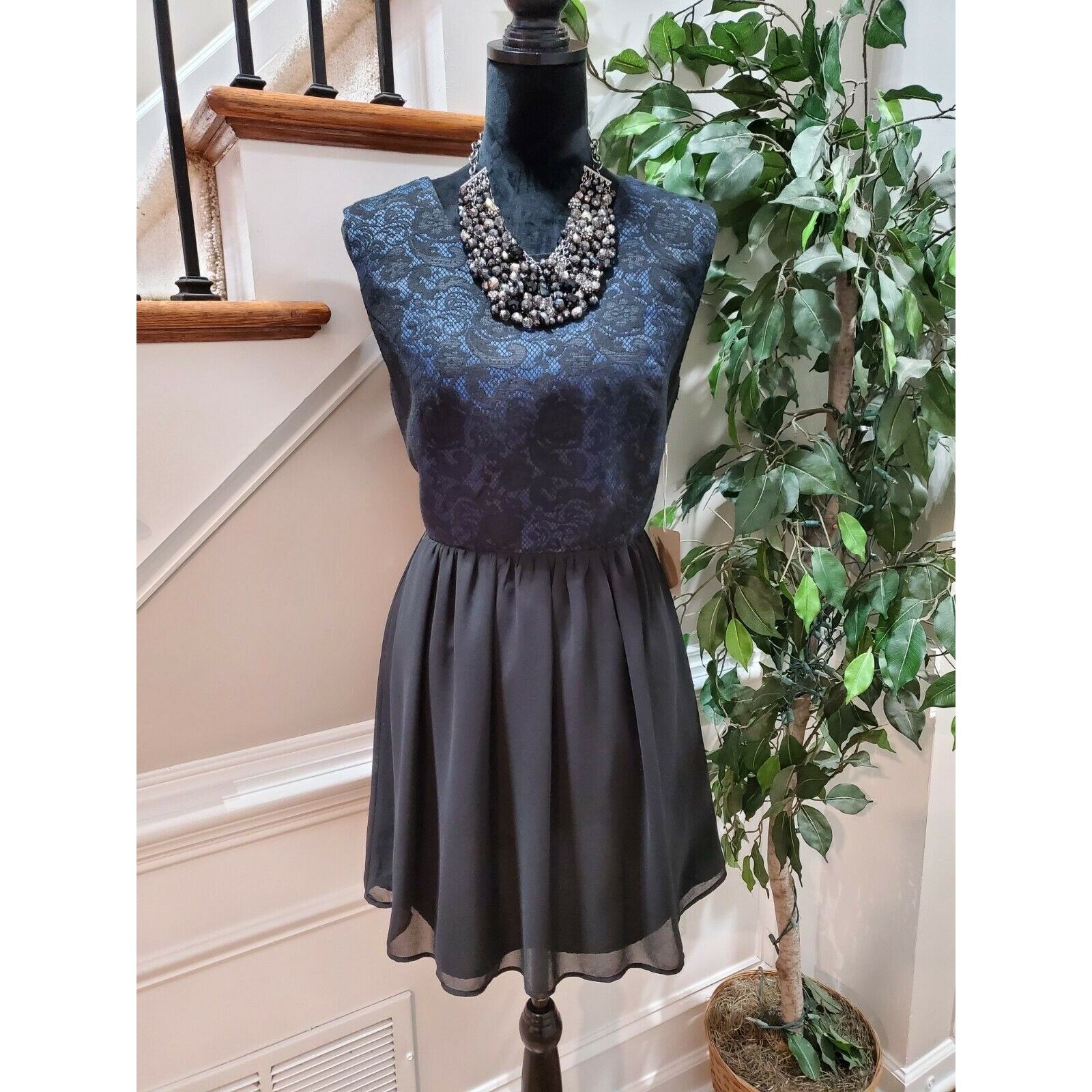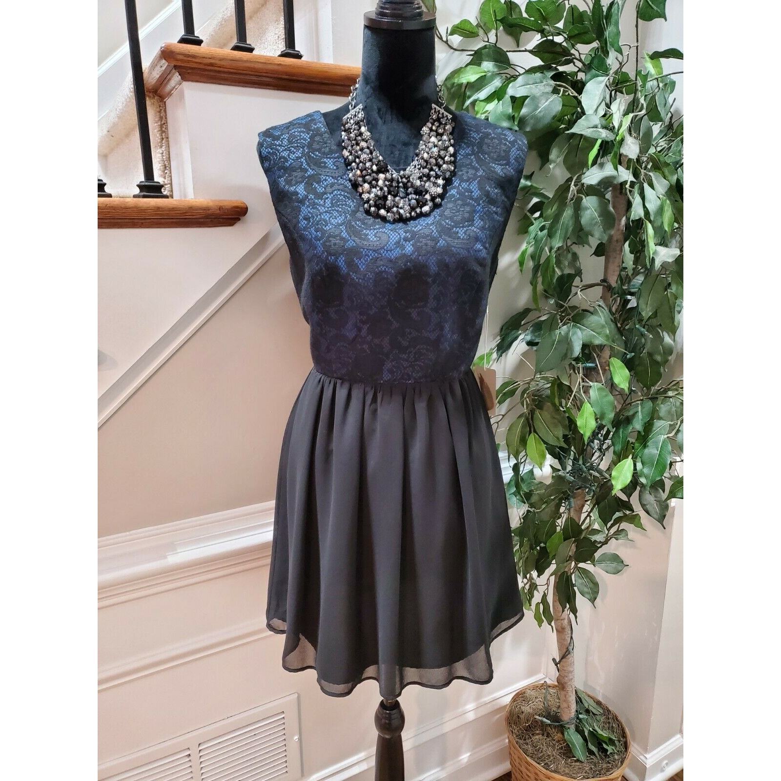 Forever21 Women's Black Polyester Sleeveless Round Neck Knee Length Dress Size L