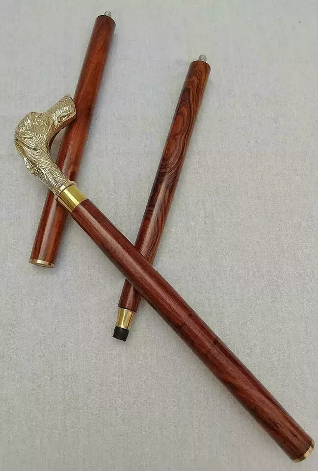 Designer Solid Dog Brass Head Handle Victoria Wooden Stick Walking Shaft Cane
