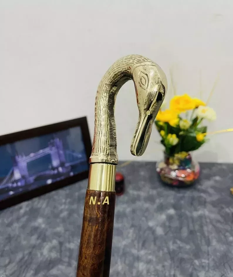 Swan Head Designer Brass Handle Wooden Walking Cane Victorian New Designer Stick