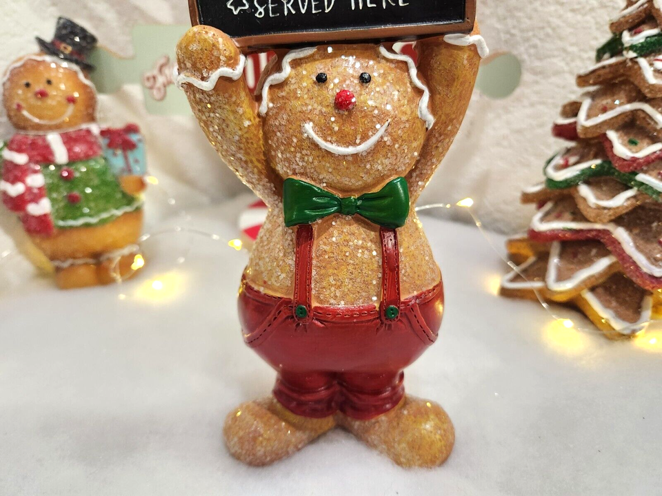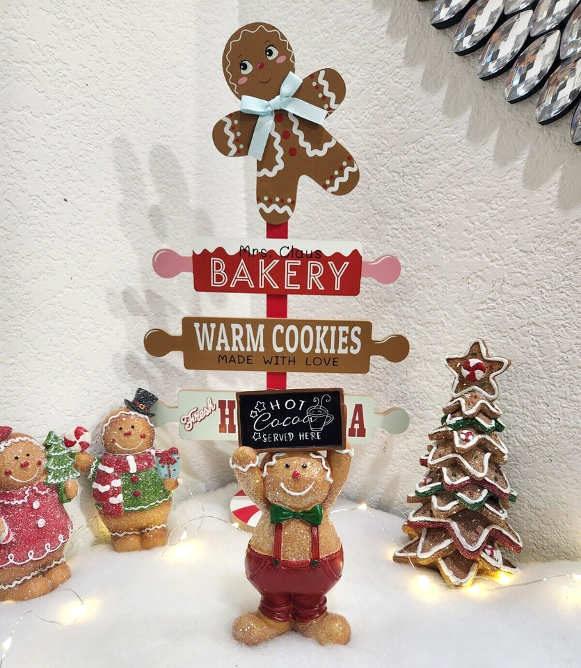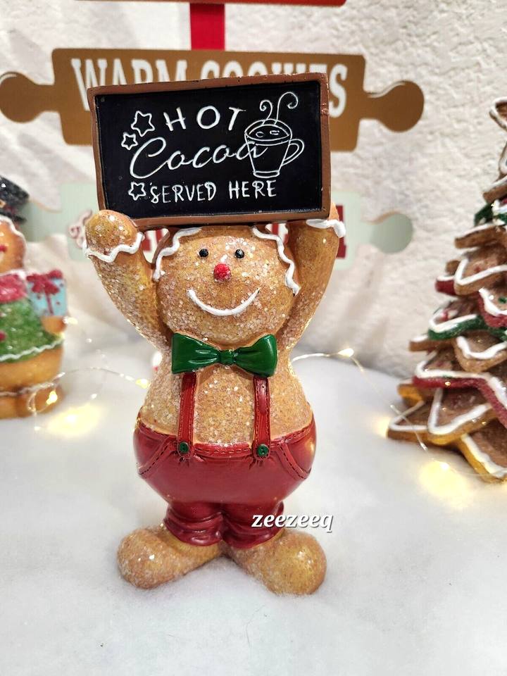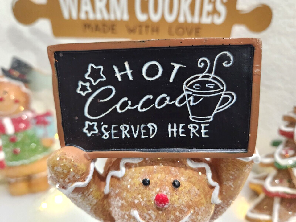 CHRISTMAS Gingerbread Man Hot Cocoa Sign Resin Figurines Tabletop Decor 6"