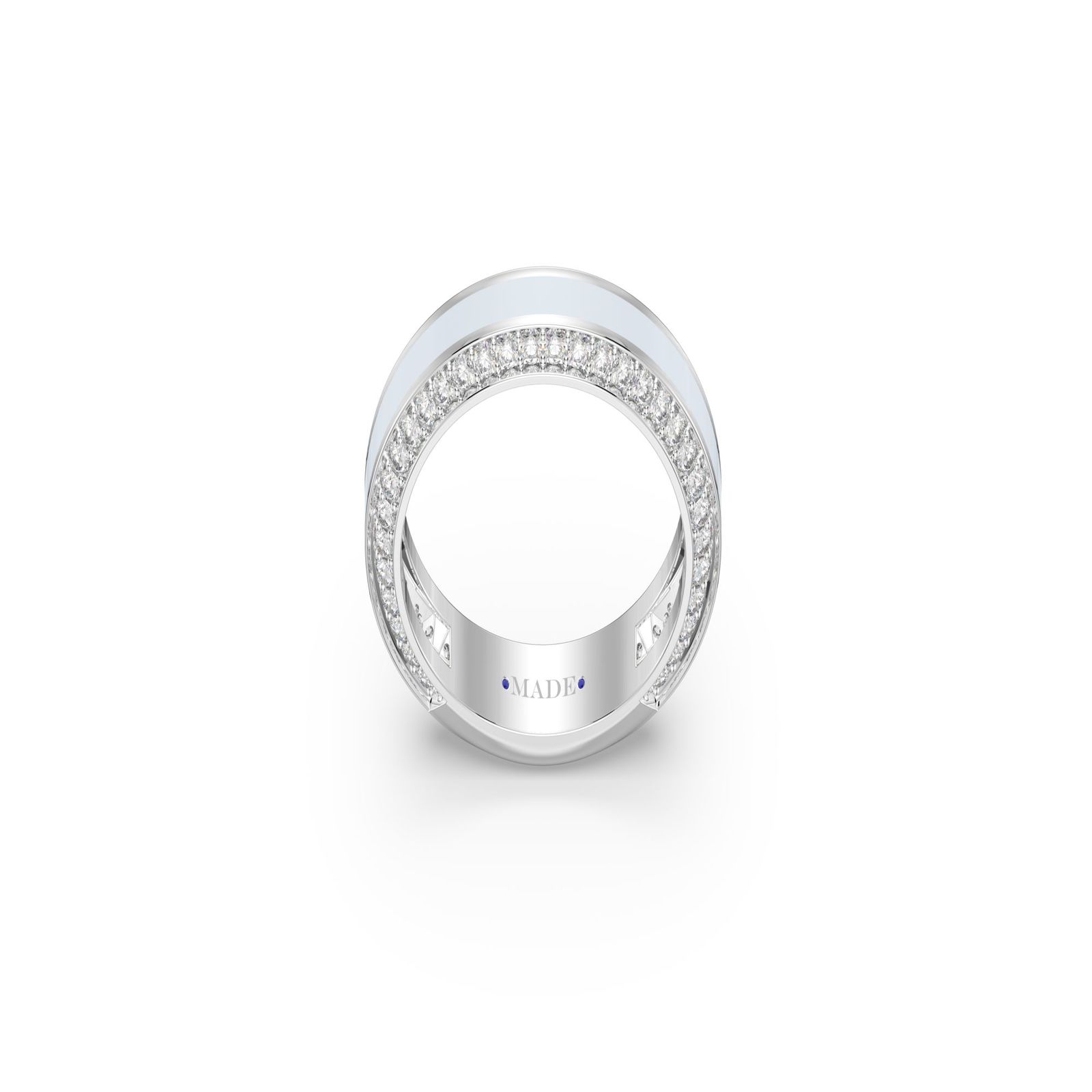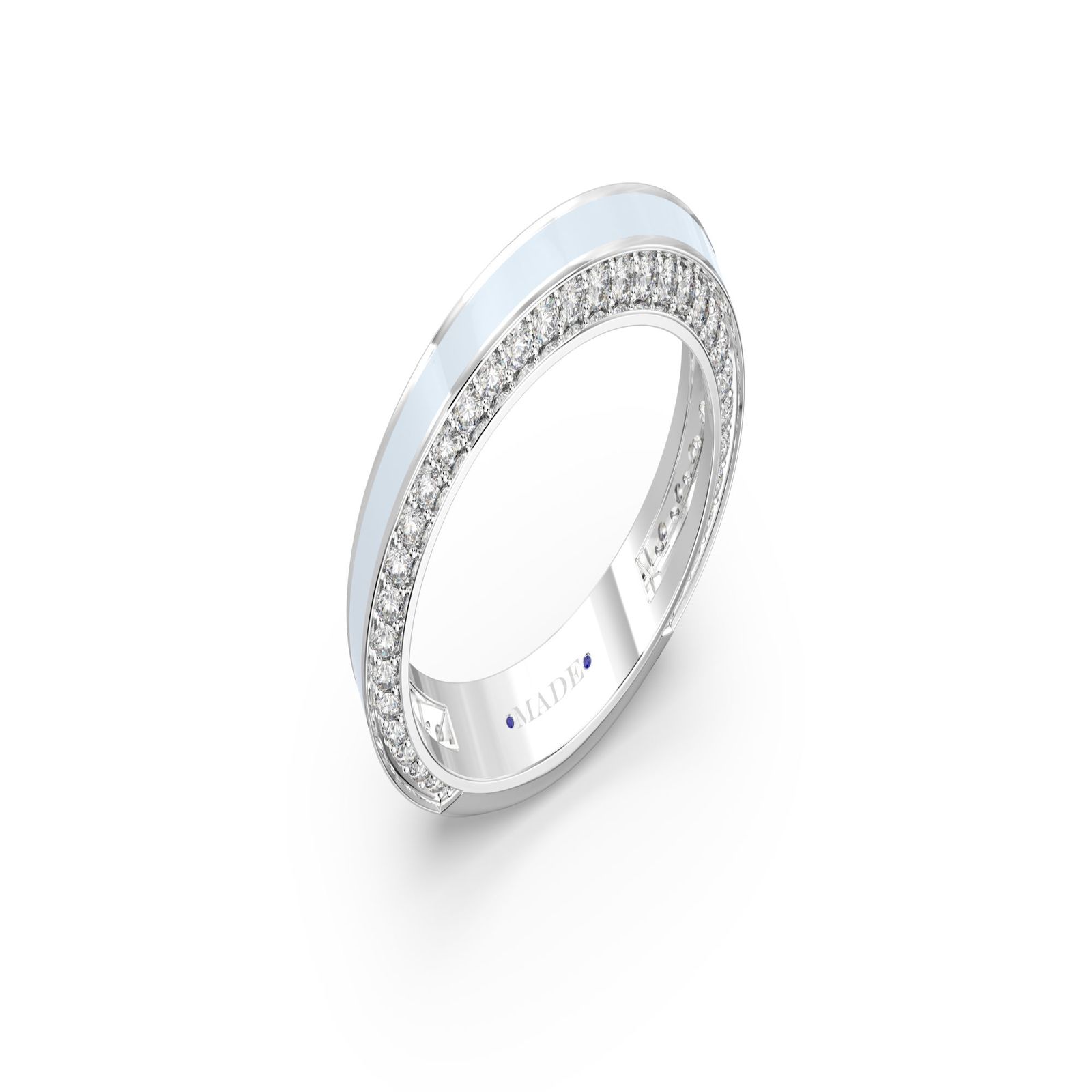 Light Blue Ceramic Lab Grown Diamond Stacking Ring in Sterling Silver & Size 7
