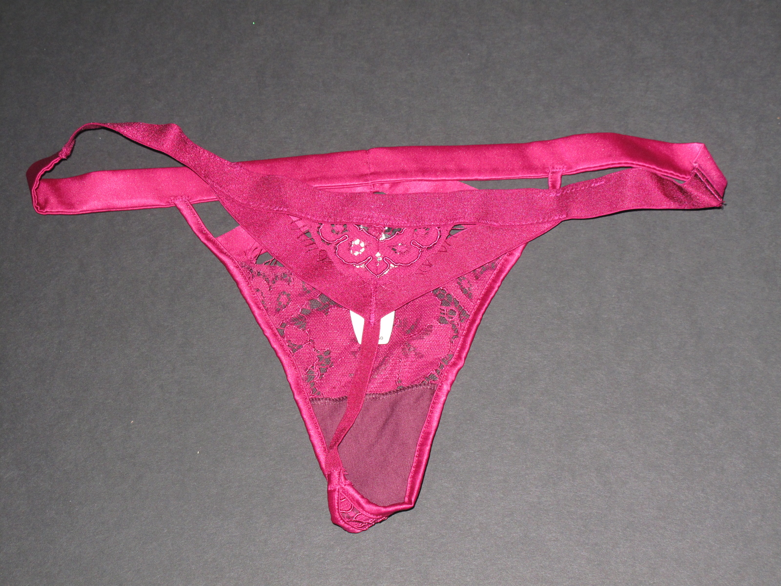 NWT Victoria's Secret Embroidered Eyelash Lace Burgundy Satin V-String Panty