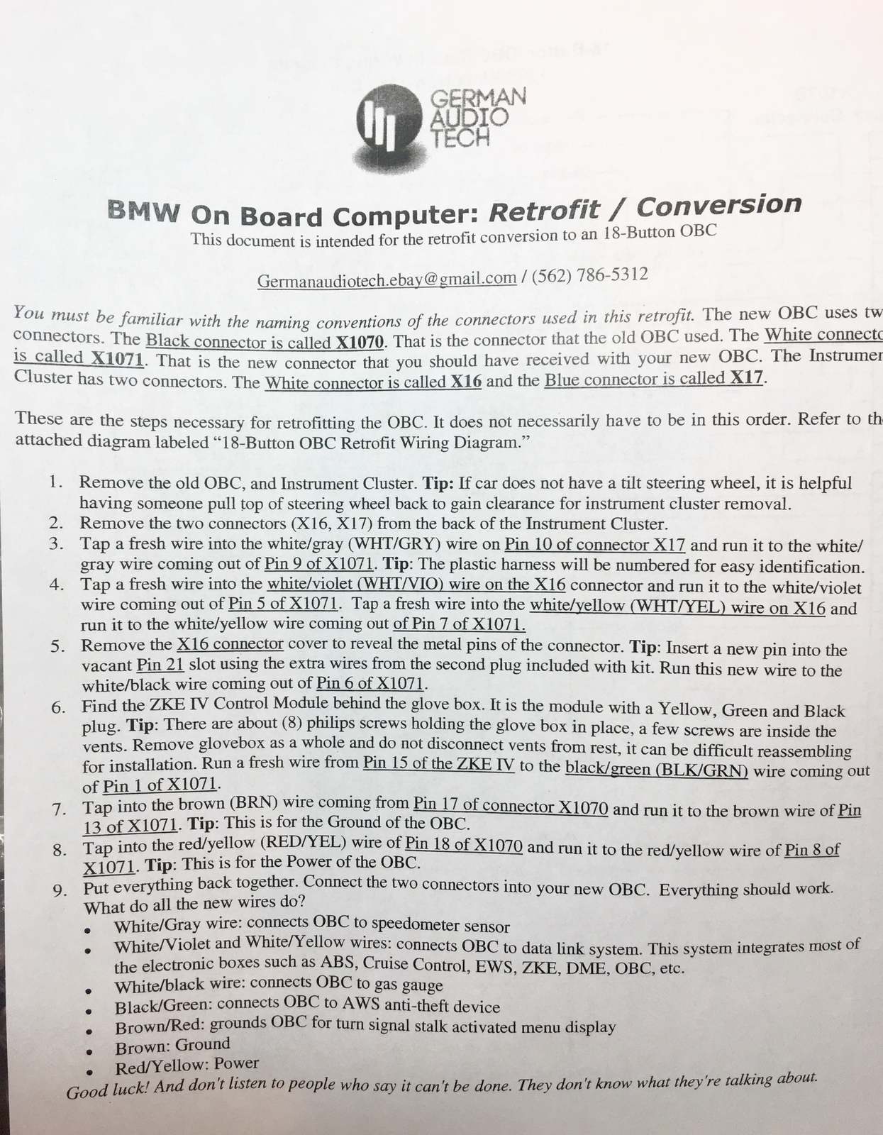 BMW E36 18 BUTTON ON BOARD COMPUTER CHECK CONTROL OBC CONVERSION KIT + WIRES