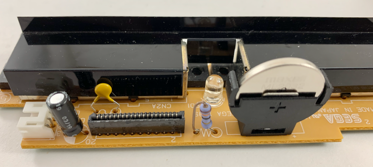 What happens if you mess up?? Let's say you rip a pad clean off: look on the underside of the PCB board, everything traces back to the ribbon. So let's say you messed up on the LED? You can solder in a small wire that goes from one leg of the LED where you messed up, to one of the points of the ribbon area. Please be very careful with this, as you can destroy your Dreamcast if you wire points incorrectly! I have done this successfully with an LED and battery. I am not too sure about the fuse, cap, or res.