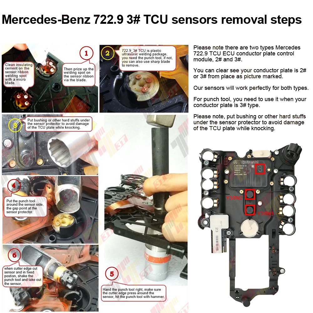 722.9 Sensor Y3/8n1 & Y3/8n2 + Punch Tool For Mercedes Benz 7G Auto Transmission