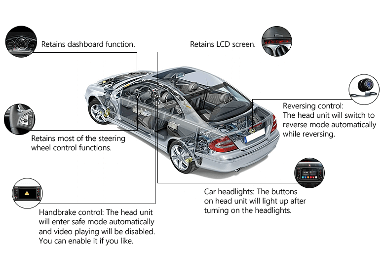 Dual CAN Bus system keeps original car function as shown below after installing the new head unit.
