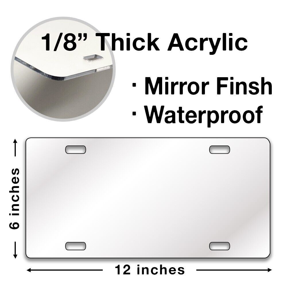 Tampa Printing uses high quality acrylic license plates with latex printed graphics for the highest durability. These have standard US fitment openings, ready for installation.