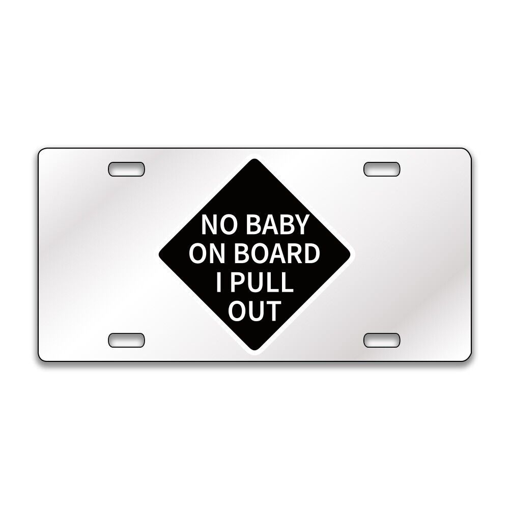 No Baby On Board I Pull Out Chrome or Black Acrylic License Plate CUSTOM LP0212