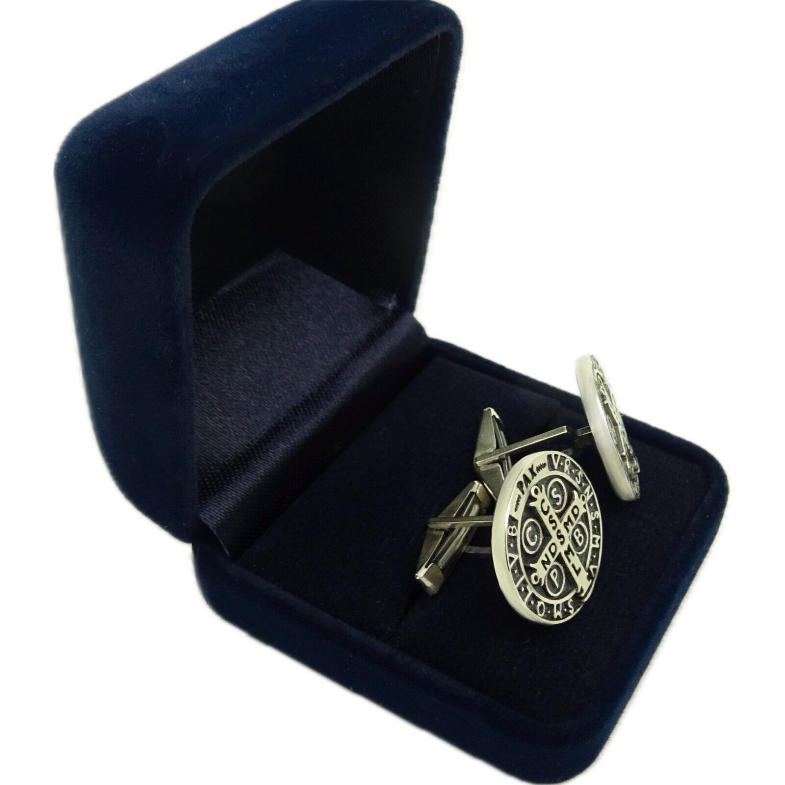 Saint St Benedict Cross Medal Sterling Silver 925 Men's Cufflinks Exorcism Gift