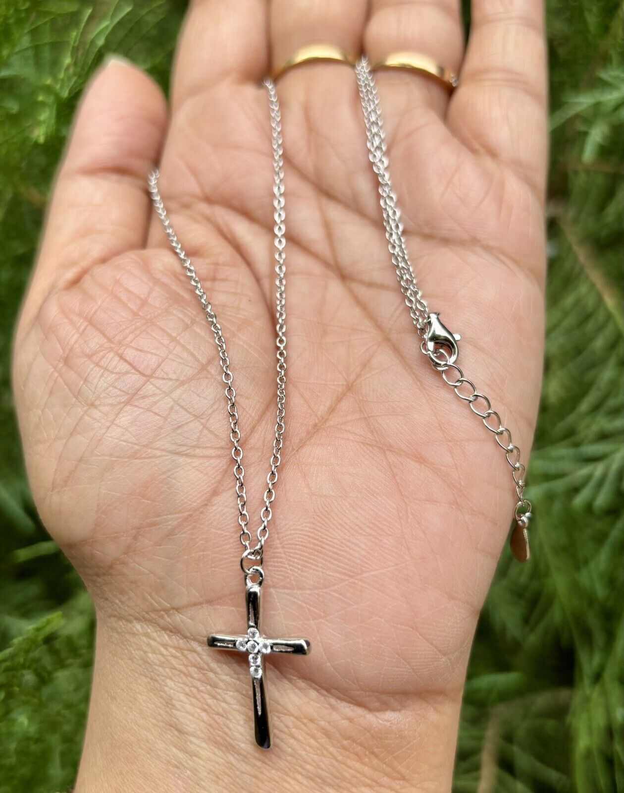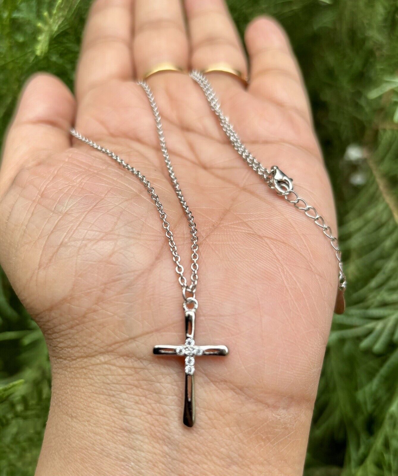 Collier croix CZ en argent sterling 925, plaqué or 16"+1" extension 3,18 gm