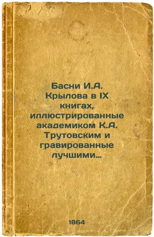 Short description: In Russian. Krylov, Ivan Andreevich. Basni I.A. Krylov in IX books illustrated by academician K.A. Trutovsky and engraved by the best painters. The image is provided for reference only. It may reflect condition of one of the available copies or only help in identifying the edition. Please feel free to contact us for a detailed description of the copies available. SKU5220600