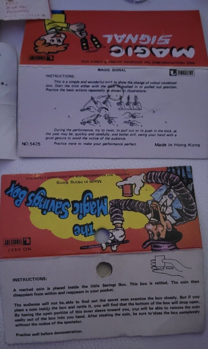 This lot of magic tricks are in good used condition. They would make a nice addition to a party or for someone to learn some cute tricks.