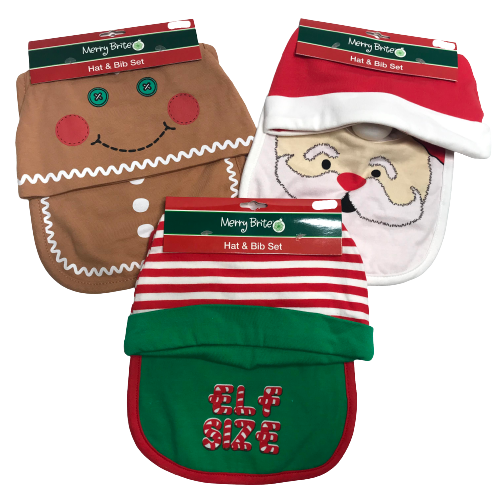 Merry Brite Baby Christmas Hat Bib Sets - Pack of 3