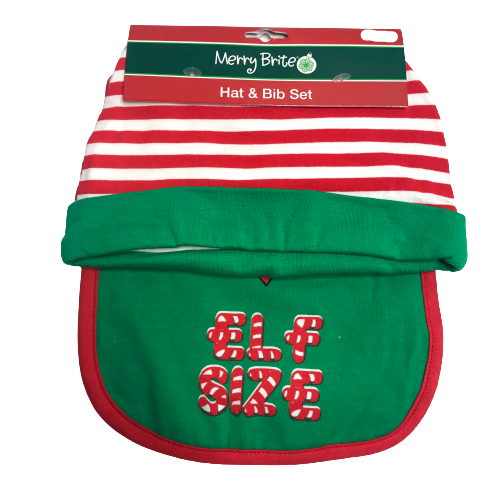 Merry Brite Baby Christmas Hat & Bib Set Striped Elf Gingerbread Santa Holiday