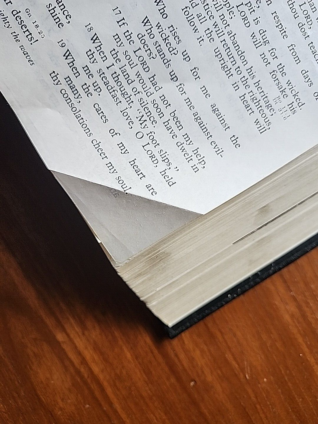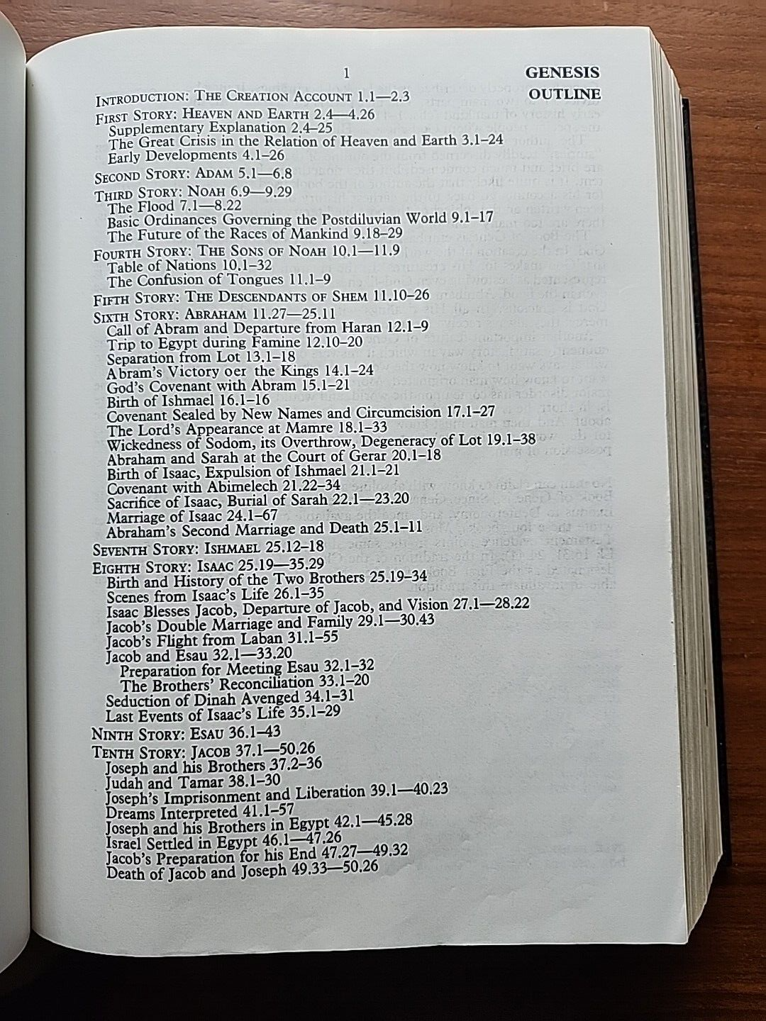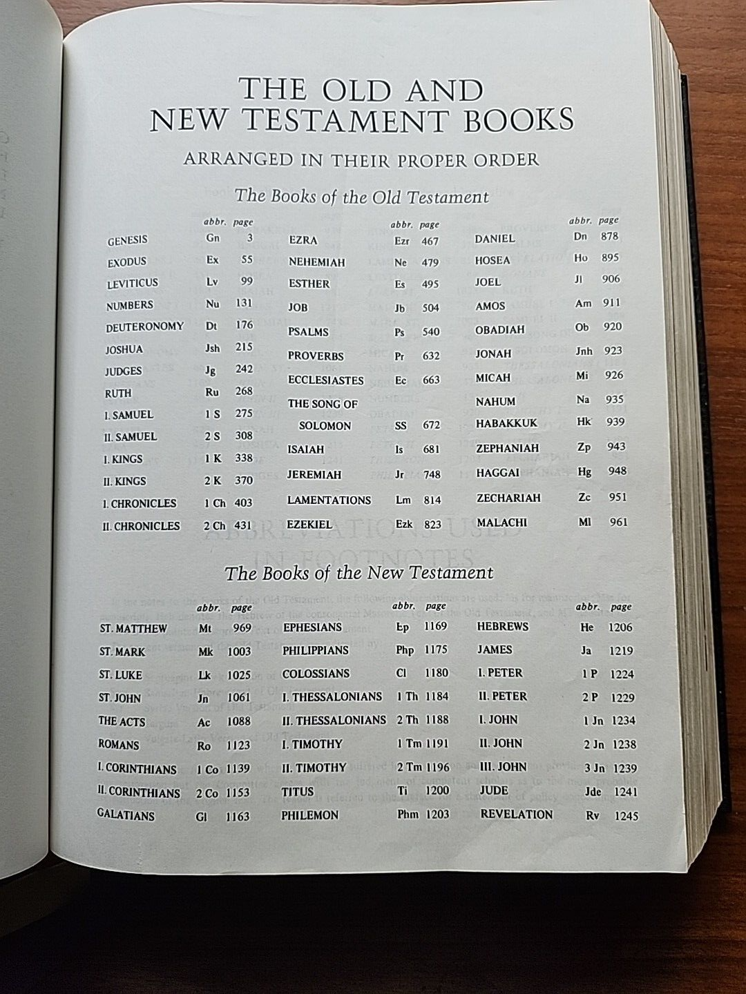 Red letter Edition, Revised Standard Edition. Large padded hard cover bible. 11 x 9 x 2.5 inches. Black with Gold-colored lettering. Family history pages are not filled in, I see no writing throughout text. Book is solid. There is a previous bookstore sticker on inside front cover. A few corner creases and I se one page with small tear on margin edge. Please see photo of this. I did not go through each page. Includes Concordance and encyclopedic index. 1260 pages plus 127 pages of index plus 107 and 61 pages of miscellaneous sections in back. A few pages have a star or checkmark written by a verse. Pages are very smooth and clean. 3 cloth bookmarks attached.