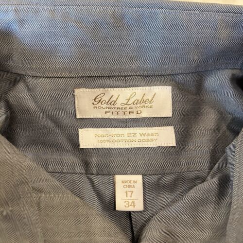 ROUNDTREE & YORKE Gold Label Dress Shirt Mens 17/34 Fitted Long Sleeve Button Up