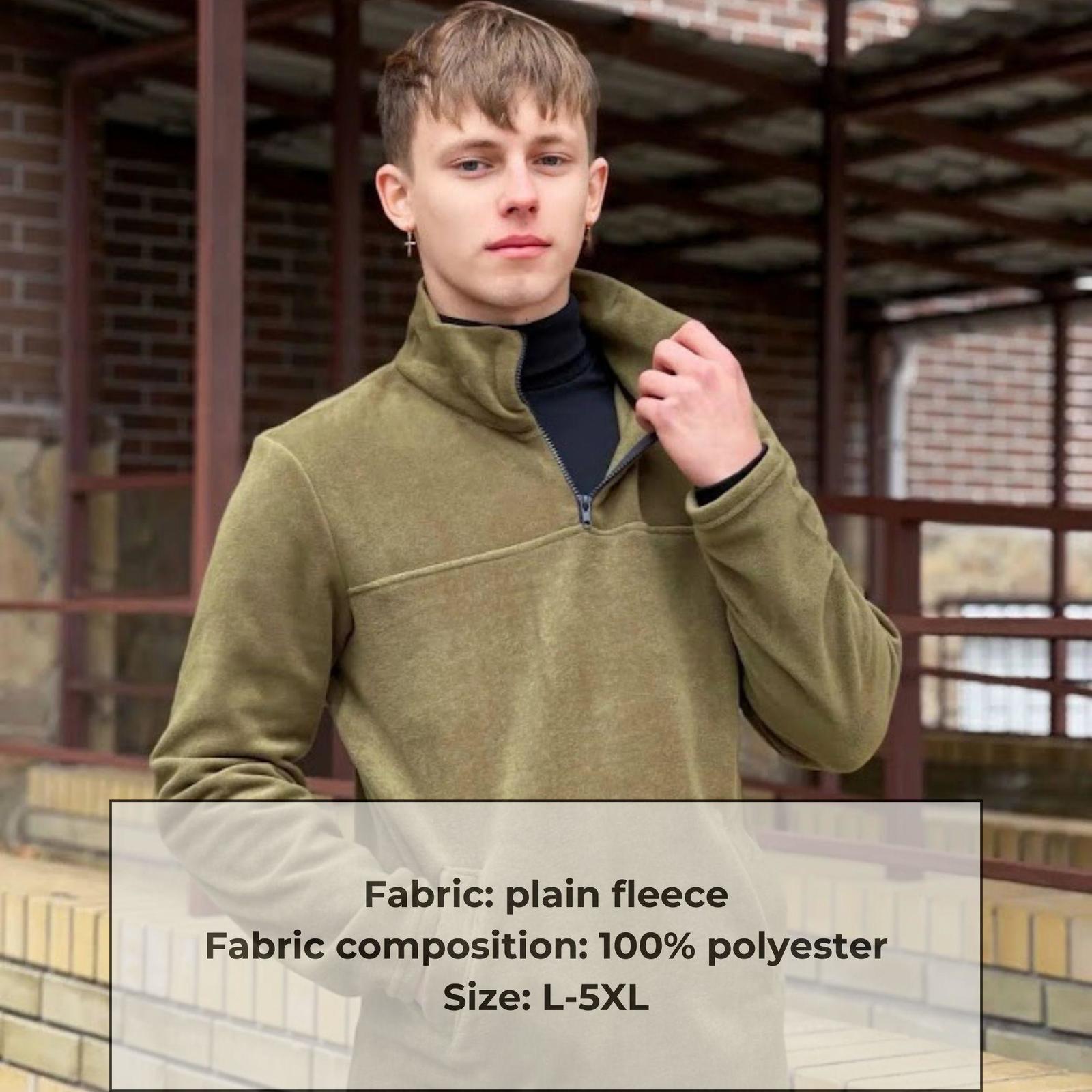This fleece jacket for men is the perfect choice for cooler weather. Made of high-quality fleece, it provides warmth, comfort and convenience. The lightweight and soft fabric allows the skin to breathe, and the classic design makes this sweatshirt versatile for everyday wear, sports or outdoor activities. Thanks to the reliable zipper and convenient pockets, this fleece sweatshirt will become an indispensable part of your wardrobe. Order this fleece jacket for men now and enjoy comfort and style at any time of the year!