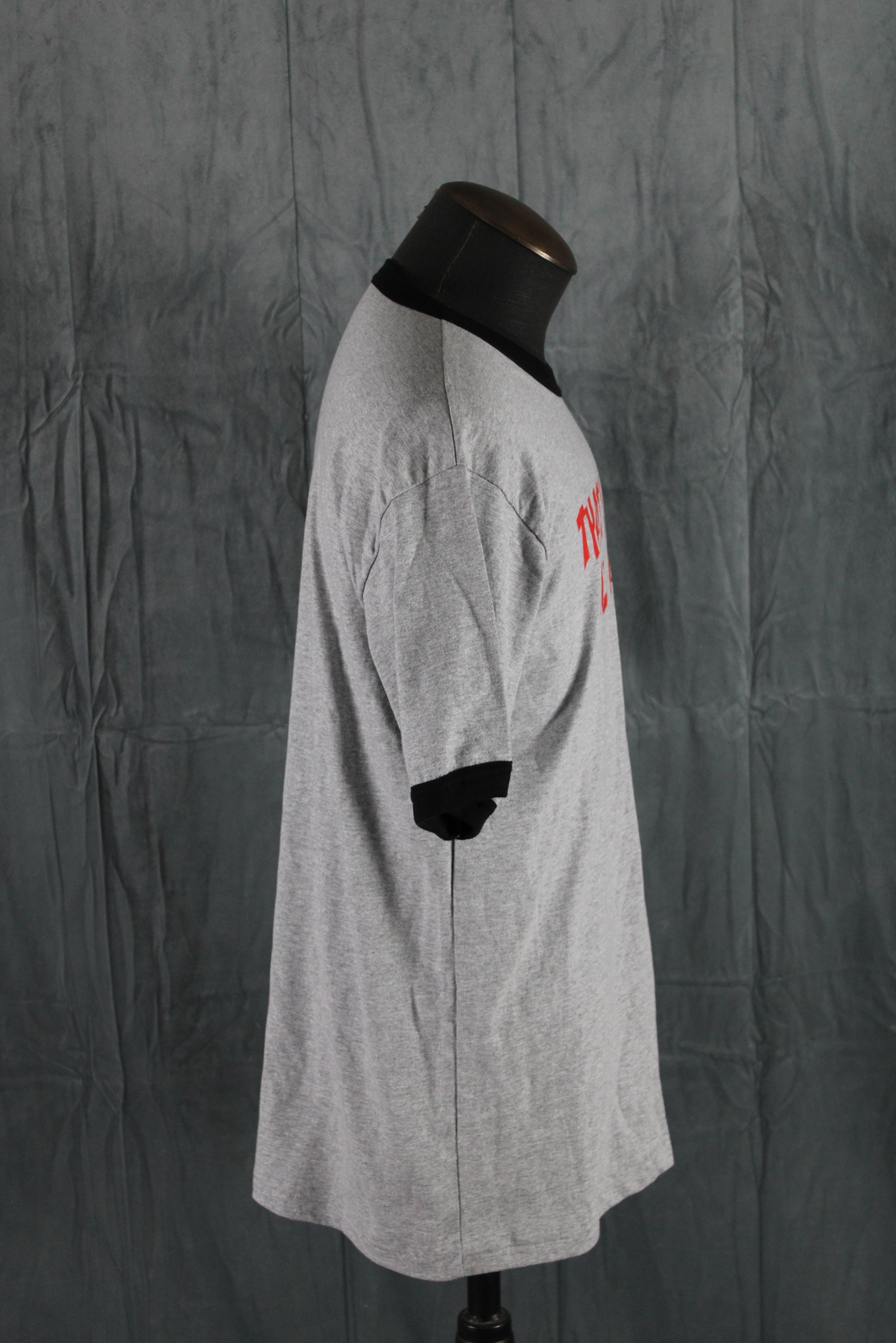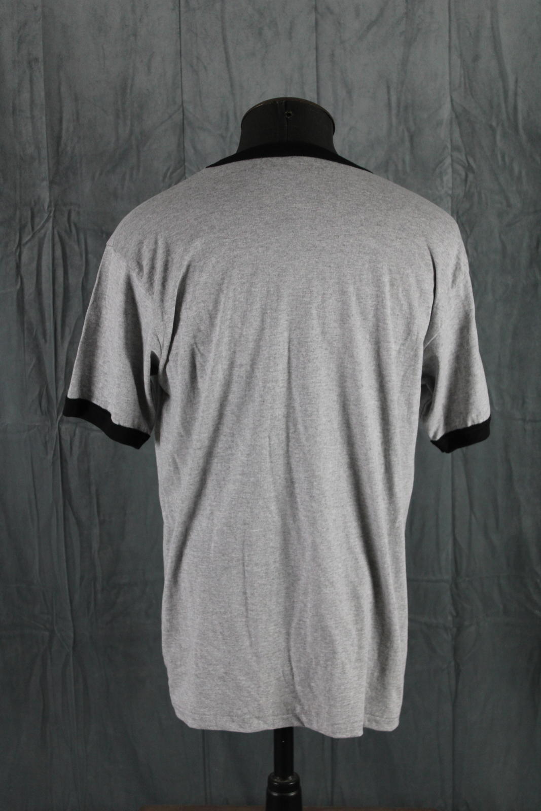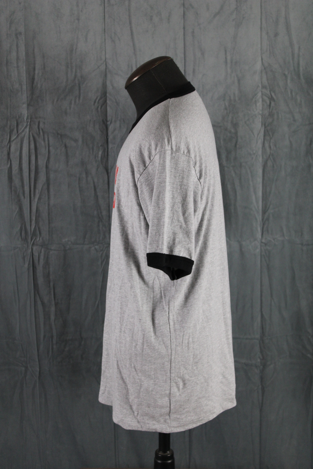 Up for sale is a vintage graphic ringer t-shirt. It has a grey base colour with black trim. The front of the shirt has That's what she said screened on in red. What a great vintage shirt do not miss out on it.