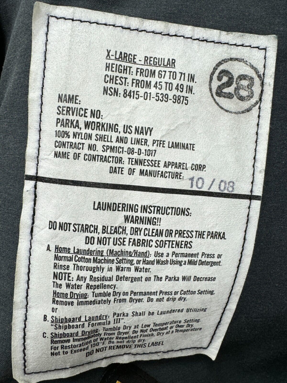 GENUINE US NAVY ISSUE - US NAVY NWU GORE TEX COLD WEATHER DIGITAL CAMOUFLAGE PARKA.