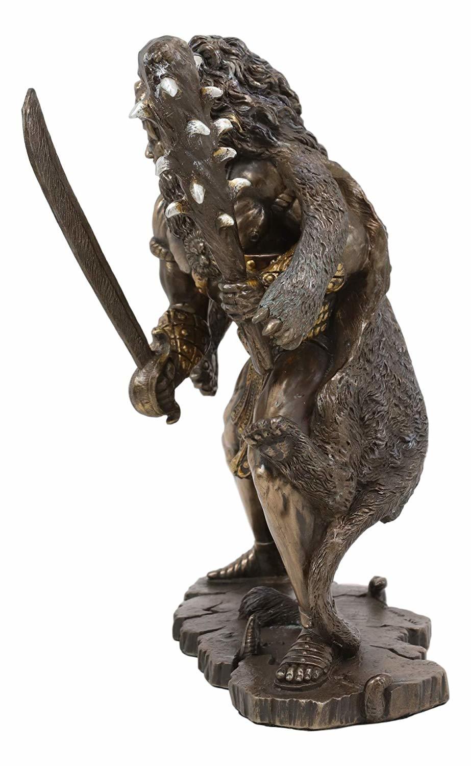 ? This figurine depicts the mighty Hercules, having defeated the Nemean Lion, skins the lion and wears a cape headdress of the Great Beast. Its impenetrable skin makes the perfect body armor. The figurine is amazingly detailed and will make a great addition to any Greek Mythology collection.
