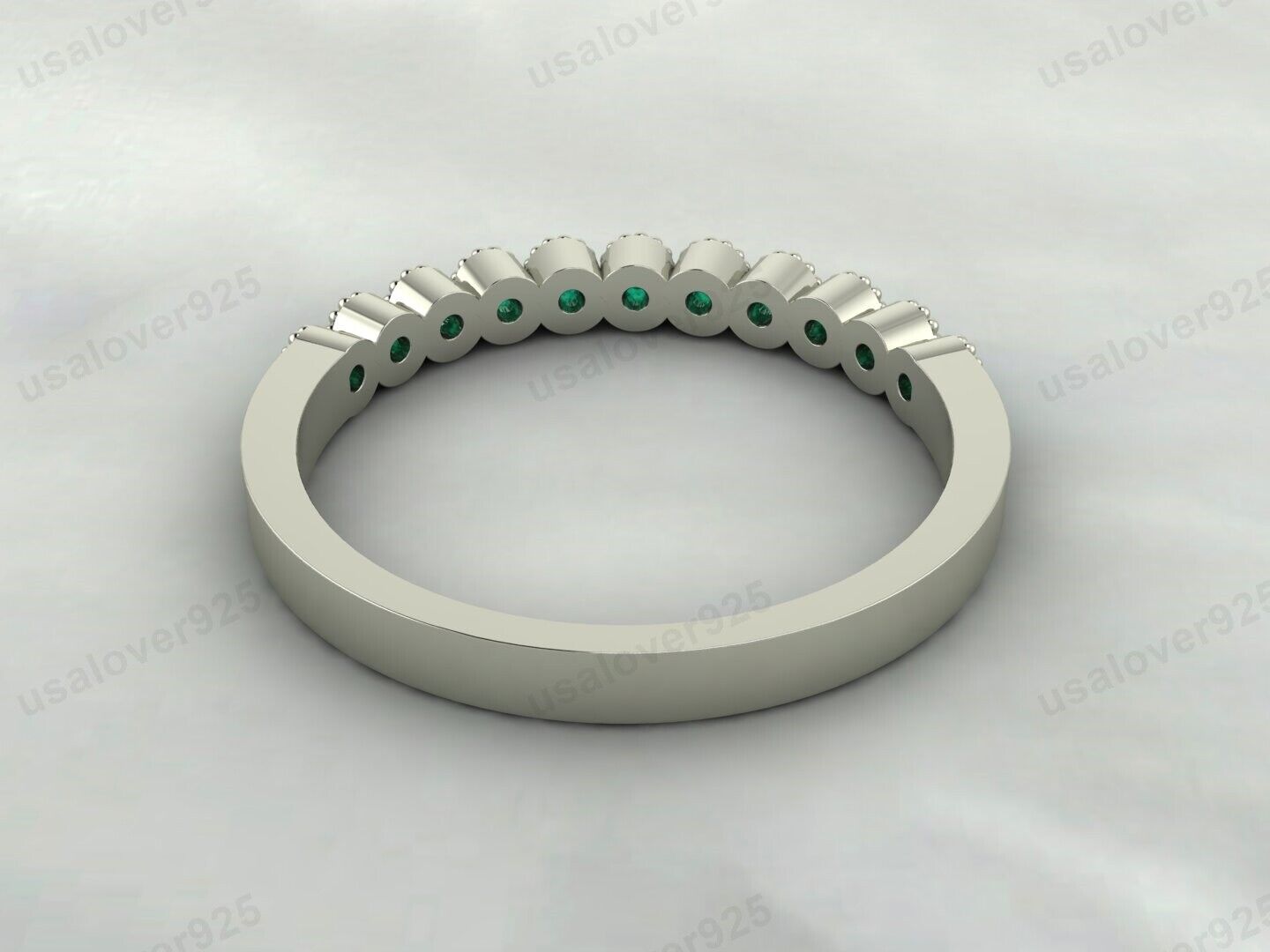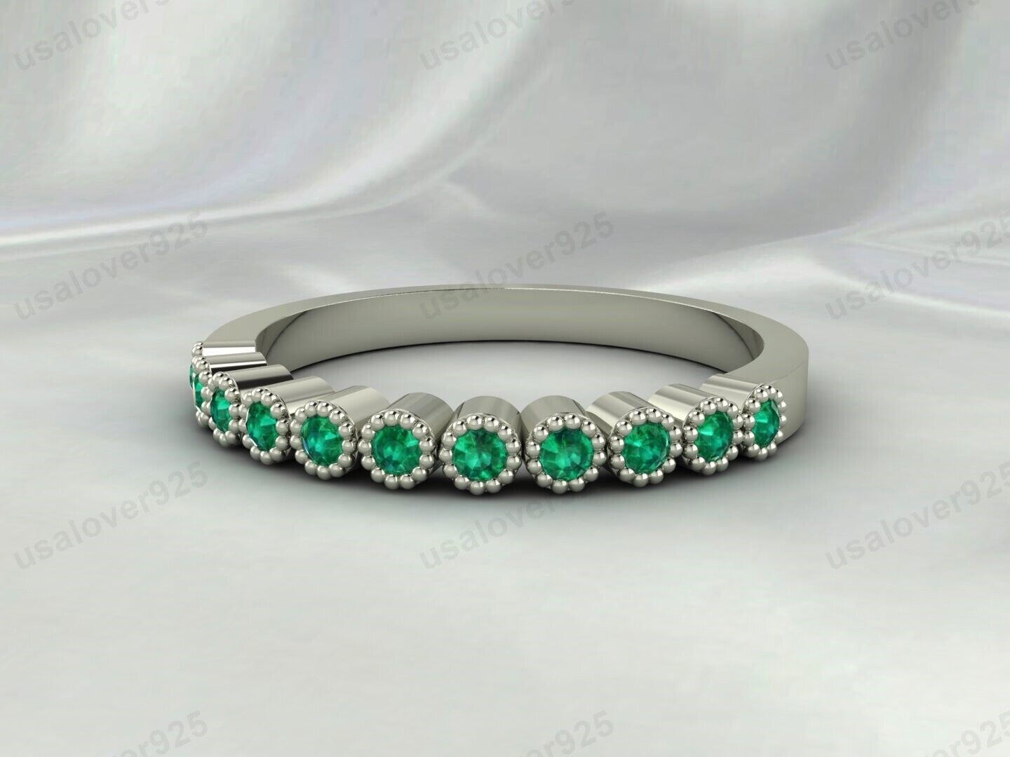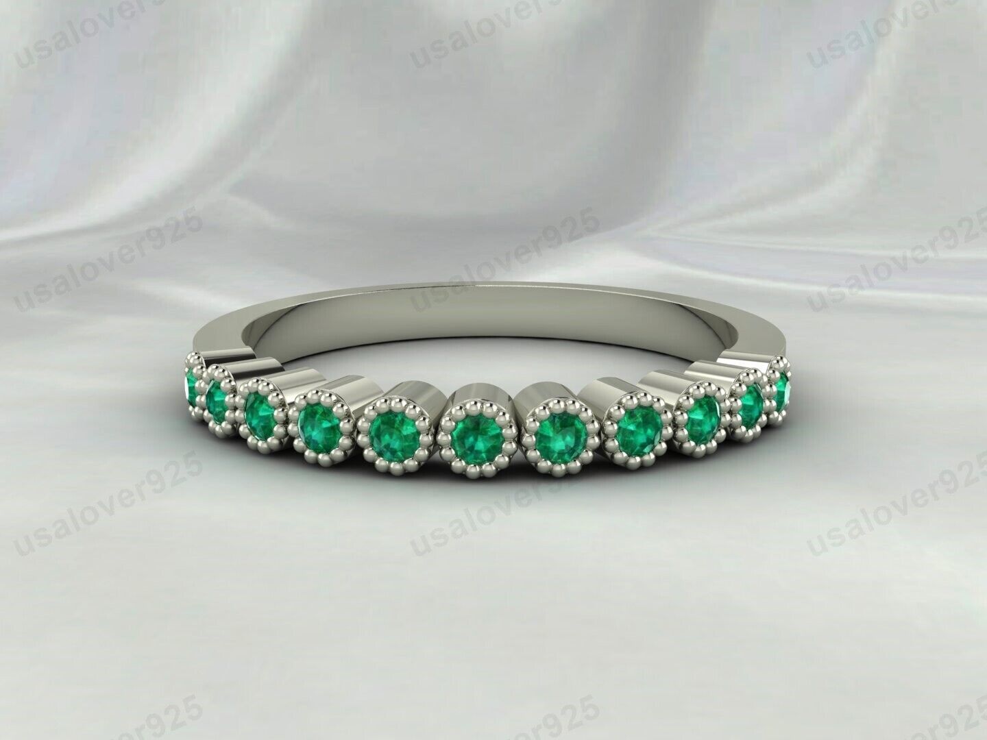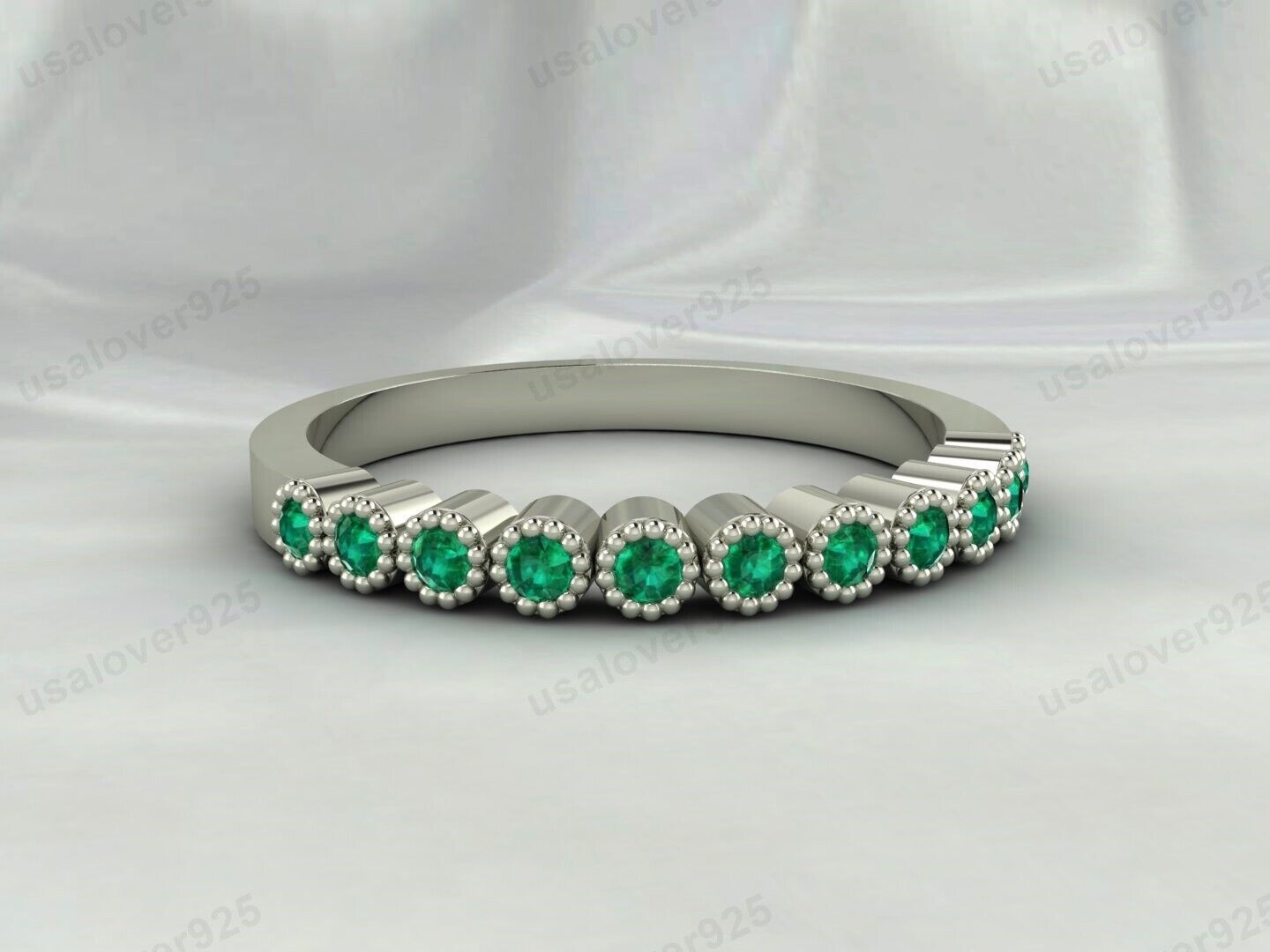 Emerald Gemstone Ring, 925 Sterling Silver, Handmade Eternity Dainty Women Ring