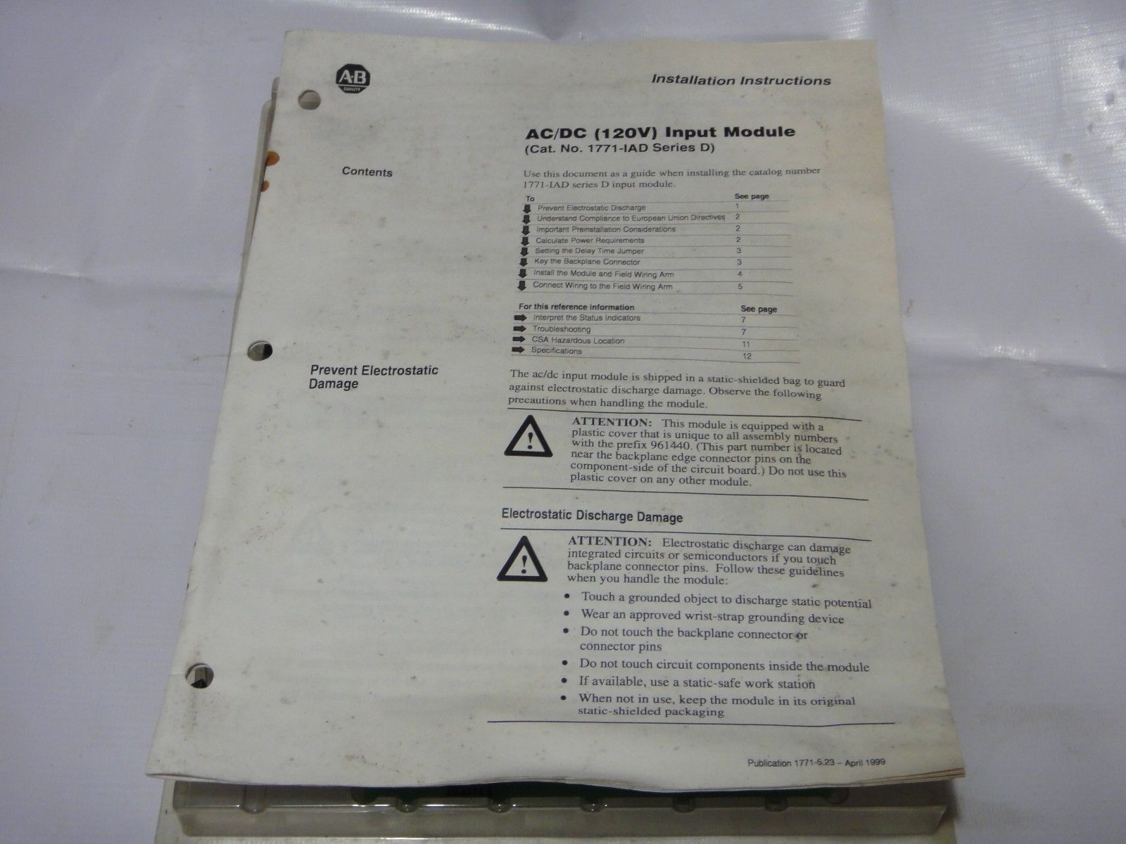 Allen-Bradley 1771-IAD/D Rev. D01 Ser D P/N and 50 similar items