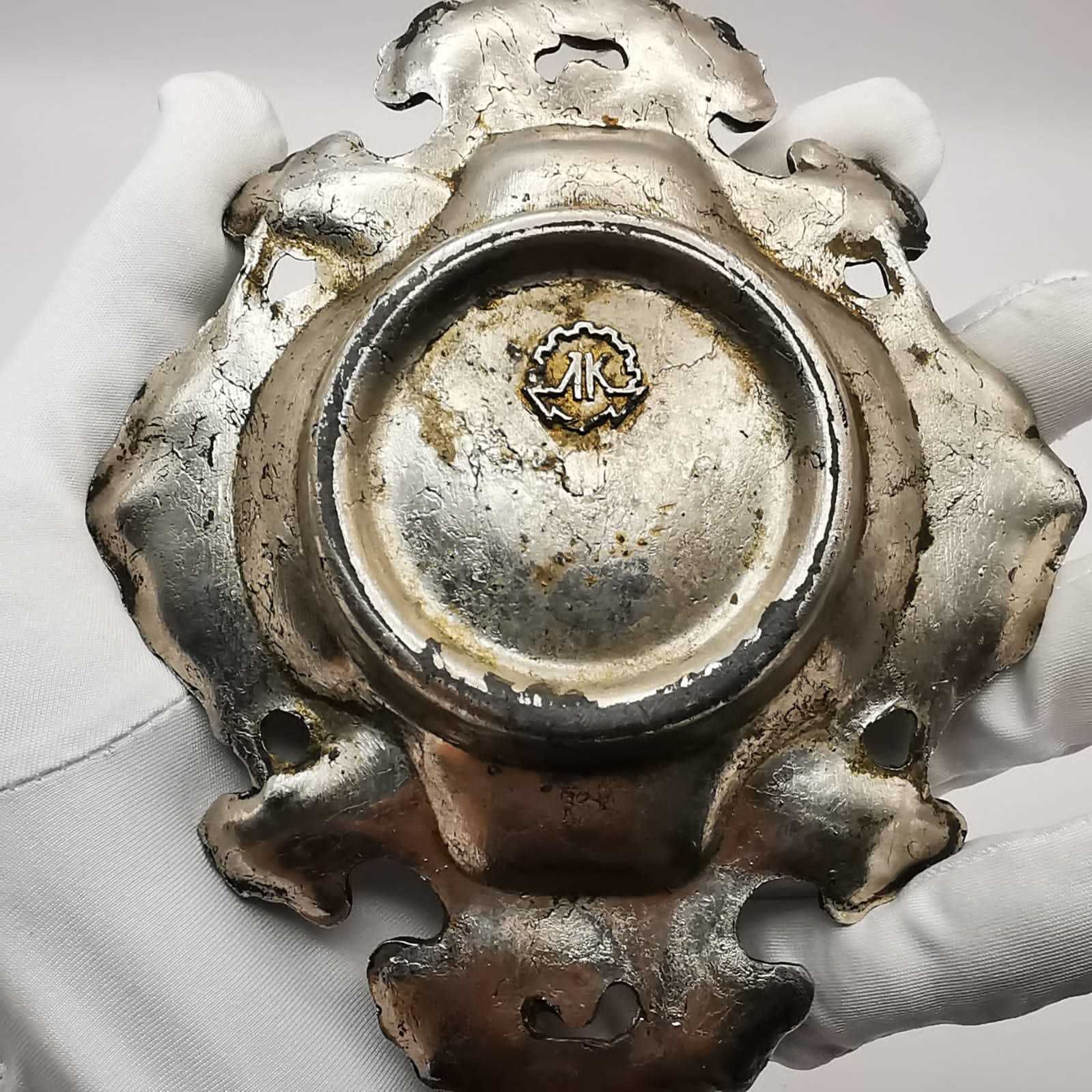 USSR 50s Vintage Ashtray,Patterned ,Handmade,Tin Lead, Signature 288g