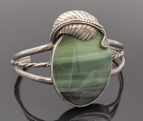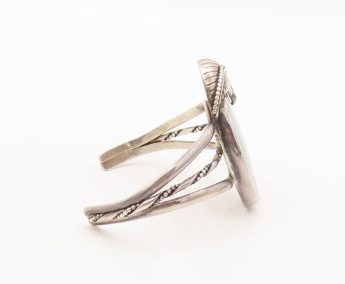 925 Sterling Silver Vintage Bracelet NAVAJO Carved Split Band Jasper BT10260