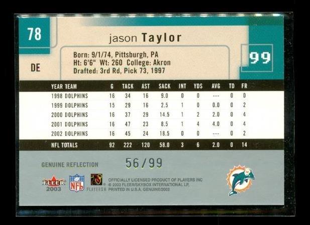 Jason Taylor 2003 Fleer Genuine Insider and 50 similar items