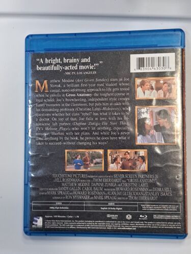 This Blu-ray disc features the compelling drama "Gross Anatomy," starring Matthew Modine and directed by Thom Eberhardt and Thomas Eberhardt. The film was released in 2011 and has a PG-13 rating. It is a great addition to any movie lover's collection, especially those who enjoy thought-provoking dramas.