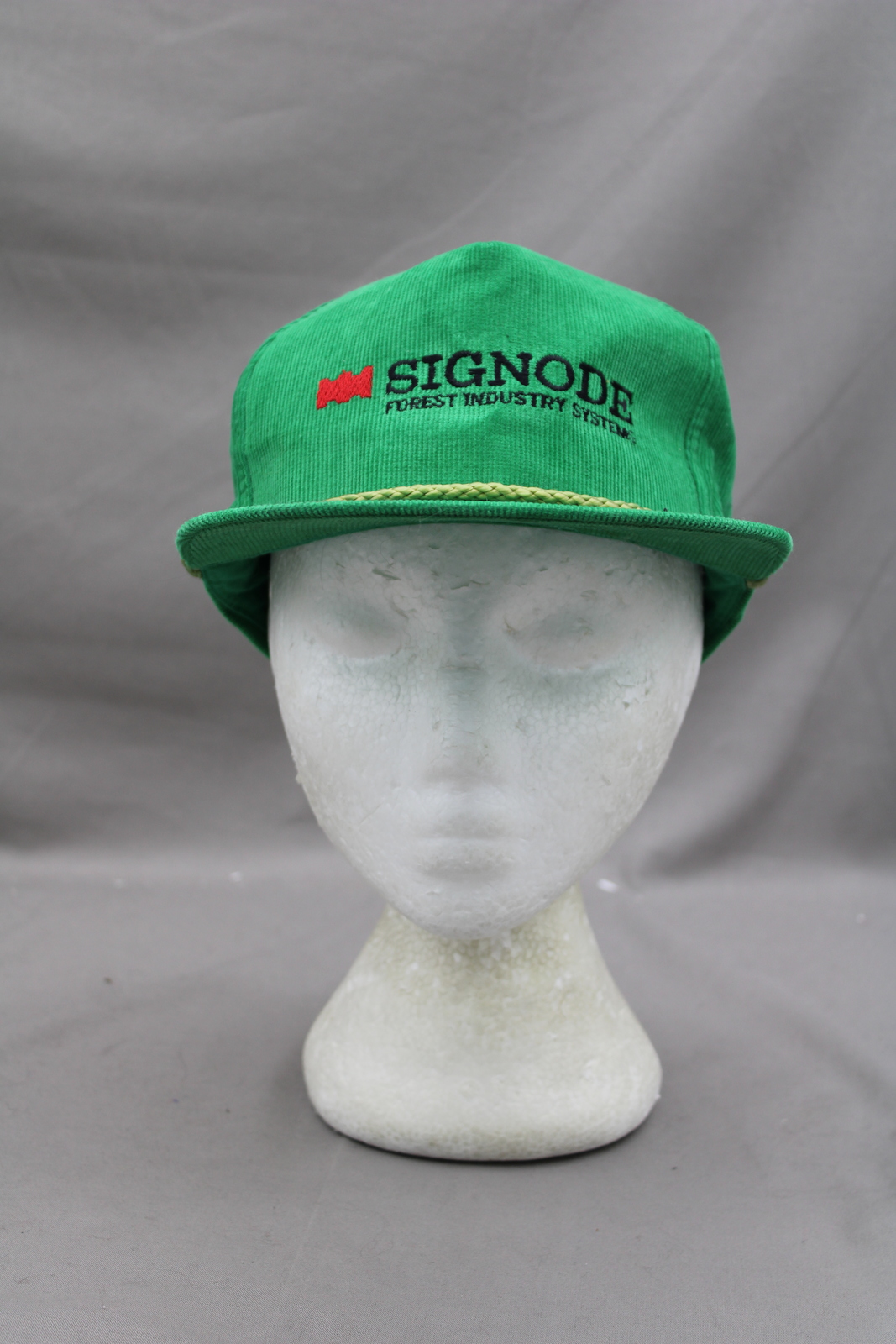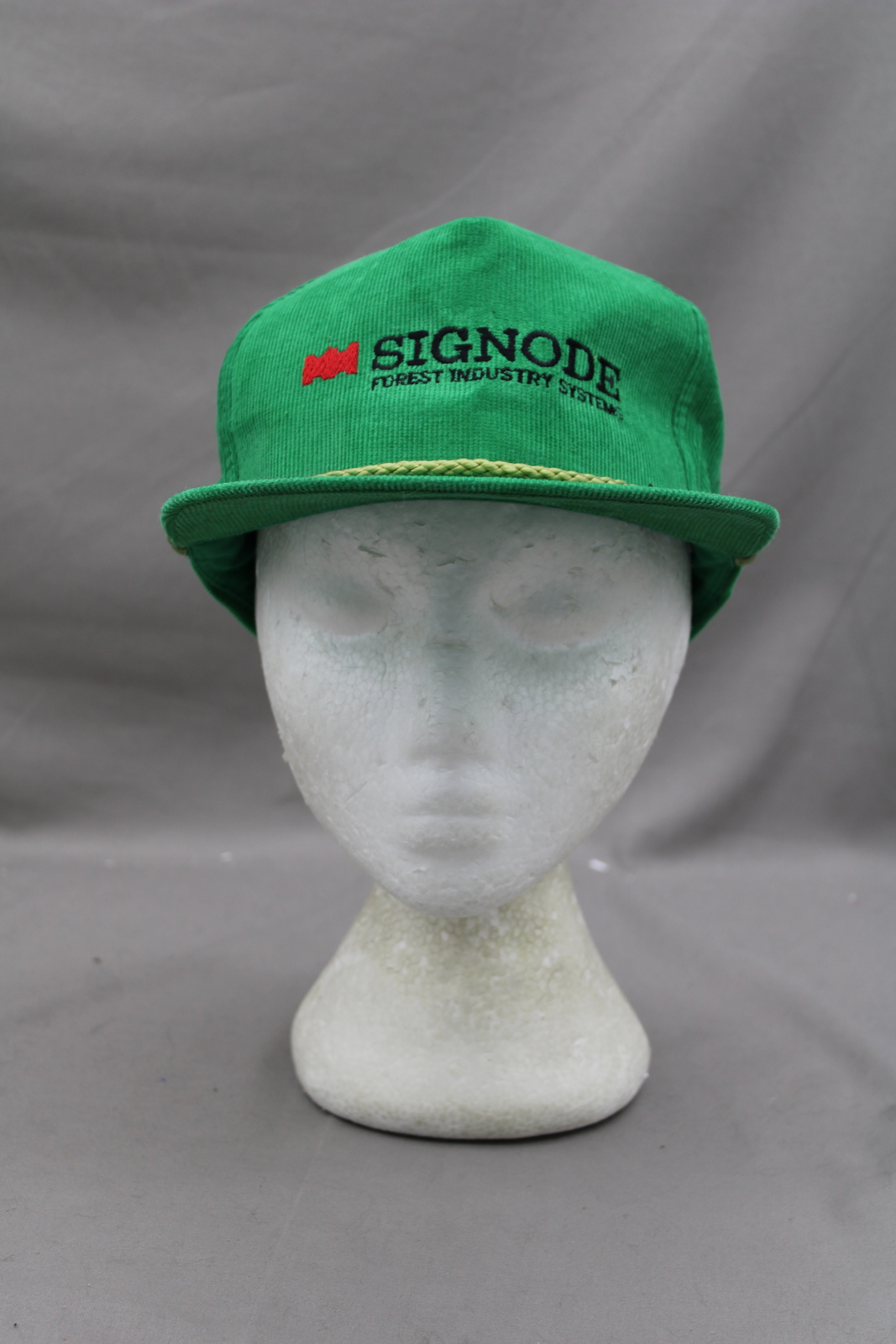Up for sale is a vintage corduroy hat. It has a green base colour with the Signode Forest Systems logo stitched in the front. What a great vintage hat do not miss out on it.
